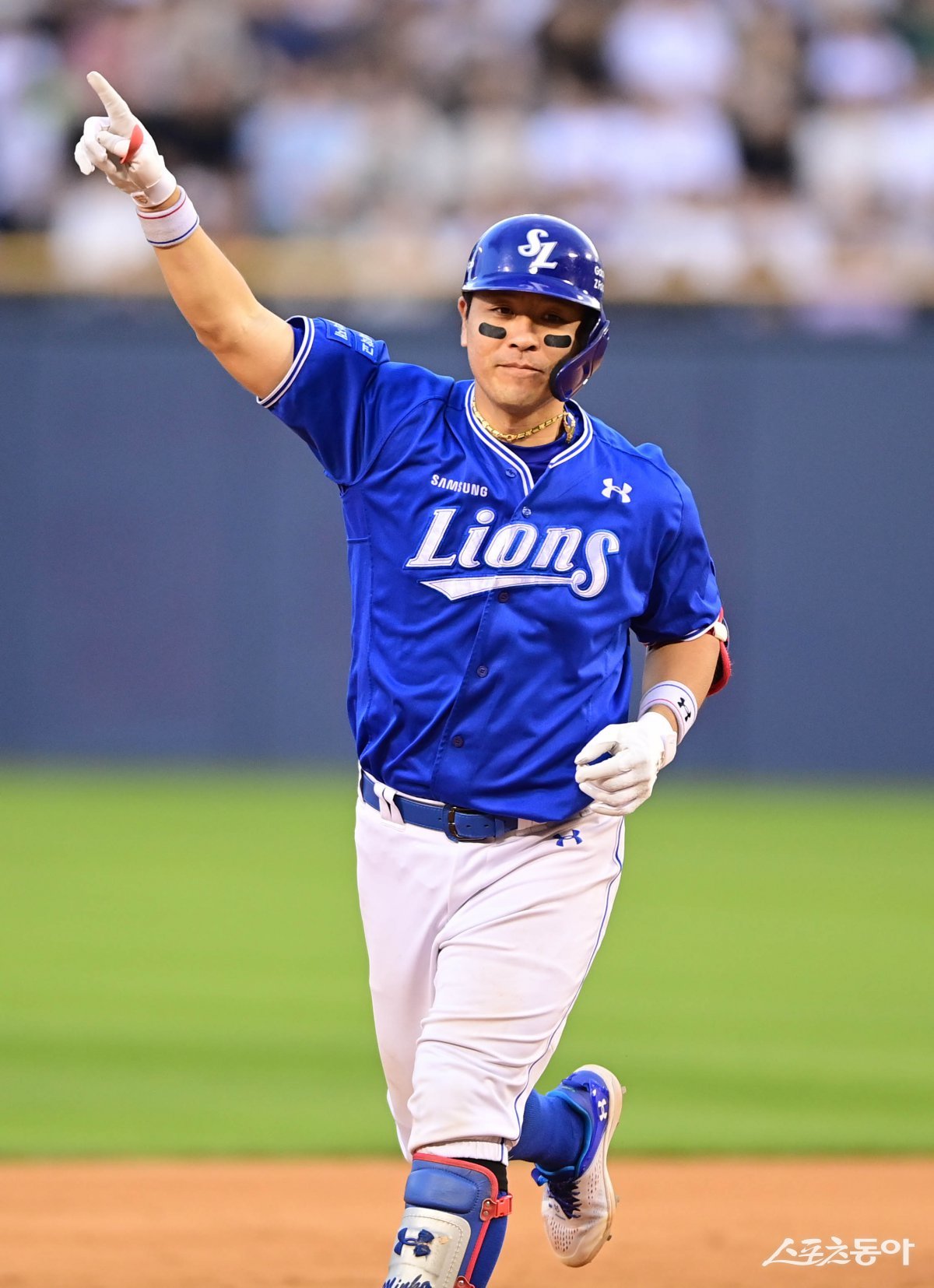 14일 서울 잠실야구장에서 열린 ‘2024 신한 SOL 뱅크 KBO리그’ 삼성 라이온즈와 두산 베어스의 경기에서 7회초 2사 1, 2루 삼성 강민호가 좌월 3점 홈런을 친 후 세리머니를 하고 있다. 잠실 | 주현희 기자 teth1147@donga.com