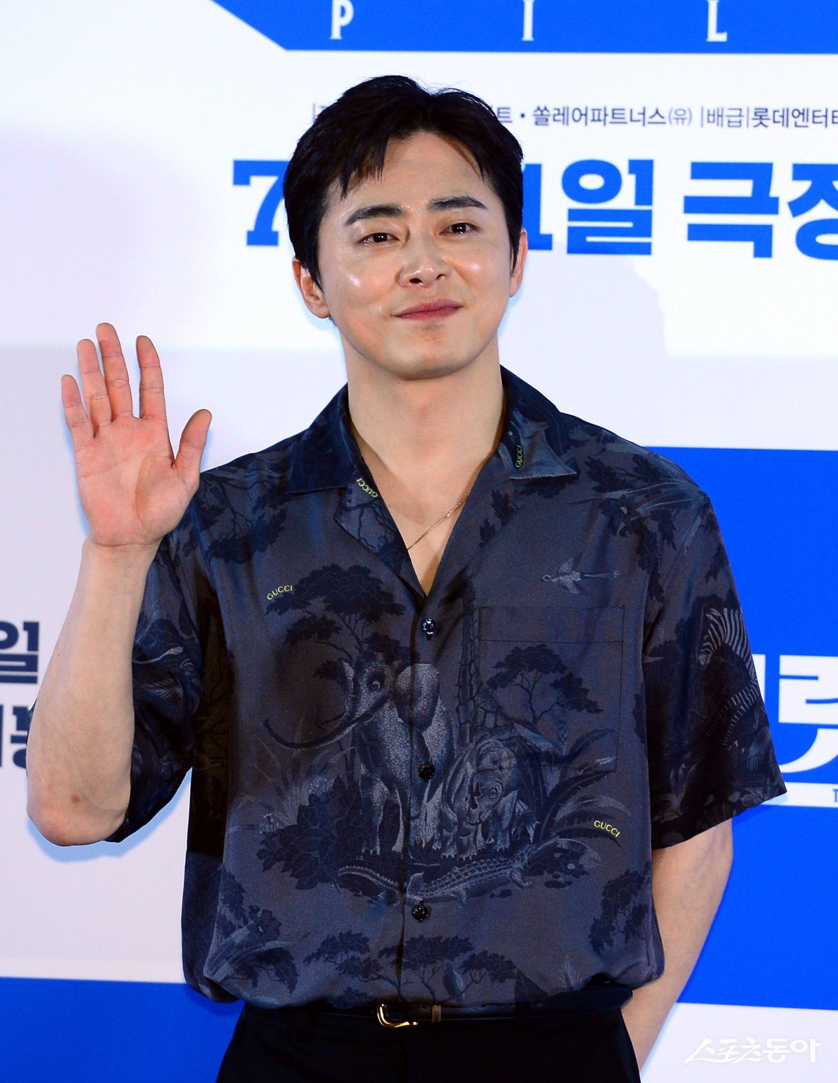 16일 서울 신천동 롯데시네마 월드타워점에서 열린 영화 ‘파일럿’ 언론시사회에 참석한 조정석이 카메라를 향해 포즈를 취하고 있다. 김민성 기자 marineboy@donga.com