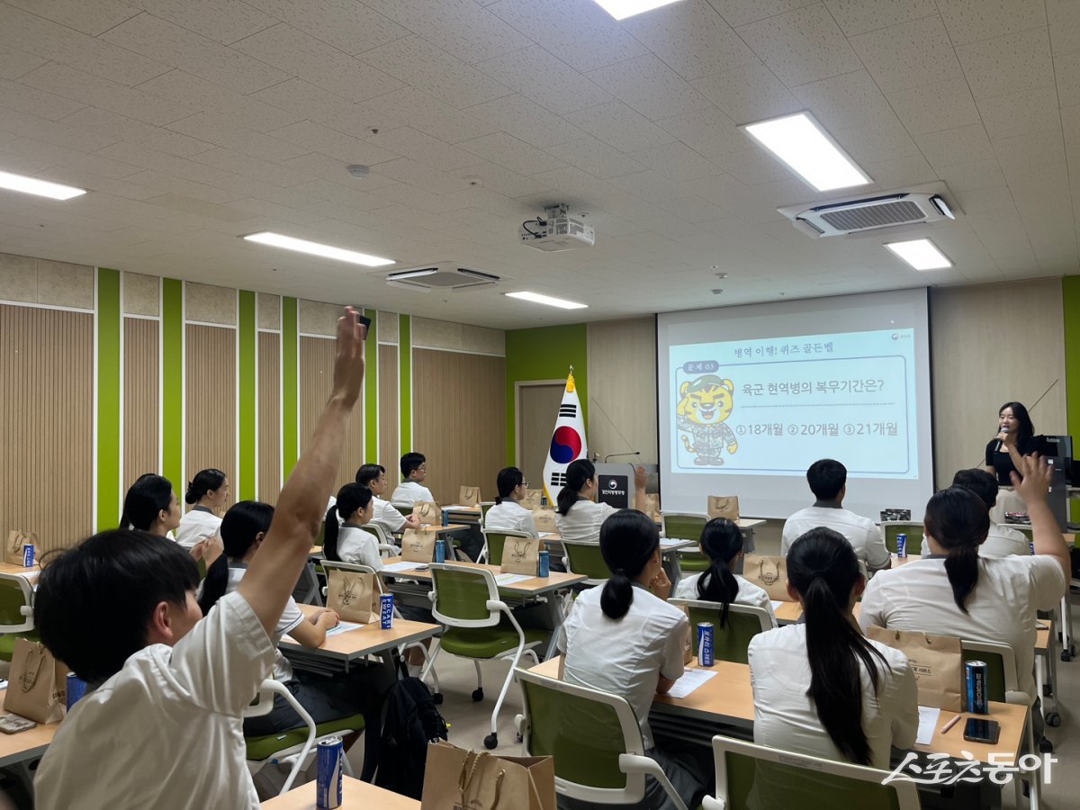 이번 행사는 직업 군인에 관심이 있는 학생들을 대상으로 병역진로설계서비스를 제공하고자 마련하였으며, 전문상담관이 직업선호도검사를 토대로 군복무 입영설계를 지원하는 한편 군 생활 정보도 함께 제공했다.