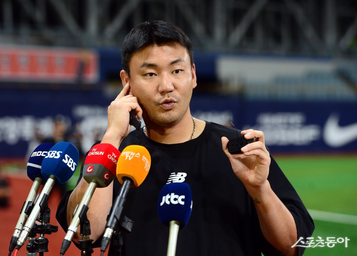 17일 서울 고척스카이돔에서 ‘2024 신한 SOL 뱅크 KBO리그’ 키움 히어로즈와 KT 위즈의 경기가 열린다. 경기에 앞서 KT 장성우가 피치컴 사용에 대해 인터뷰를 하고 있다. 고척 | 김민성 기자 marineboy@donga.com