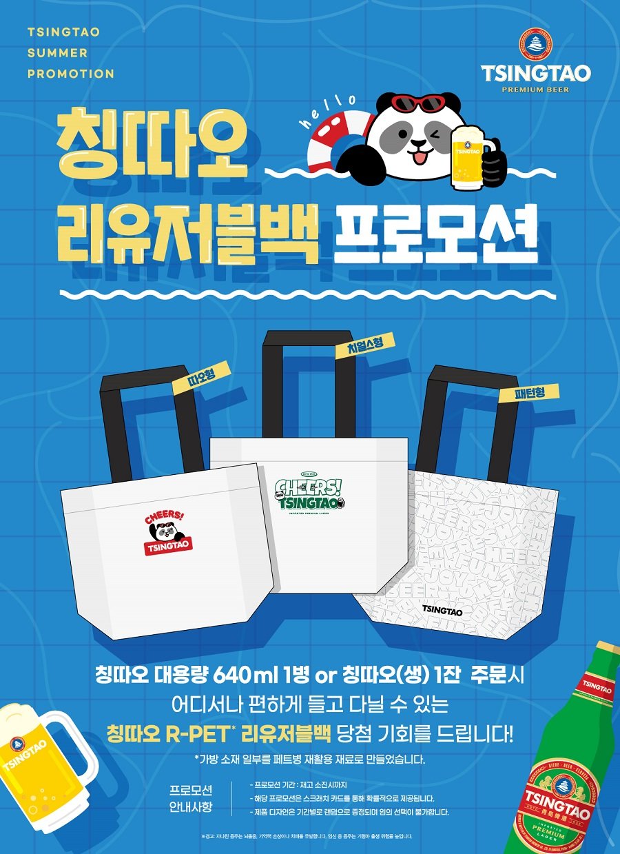 비어케이가 수입 판매하는 맥주 칭따오가 리유저블백 증정 스크래치 쿠폰 프로모션을 연다.