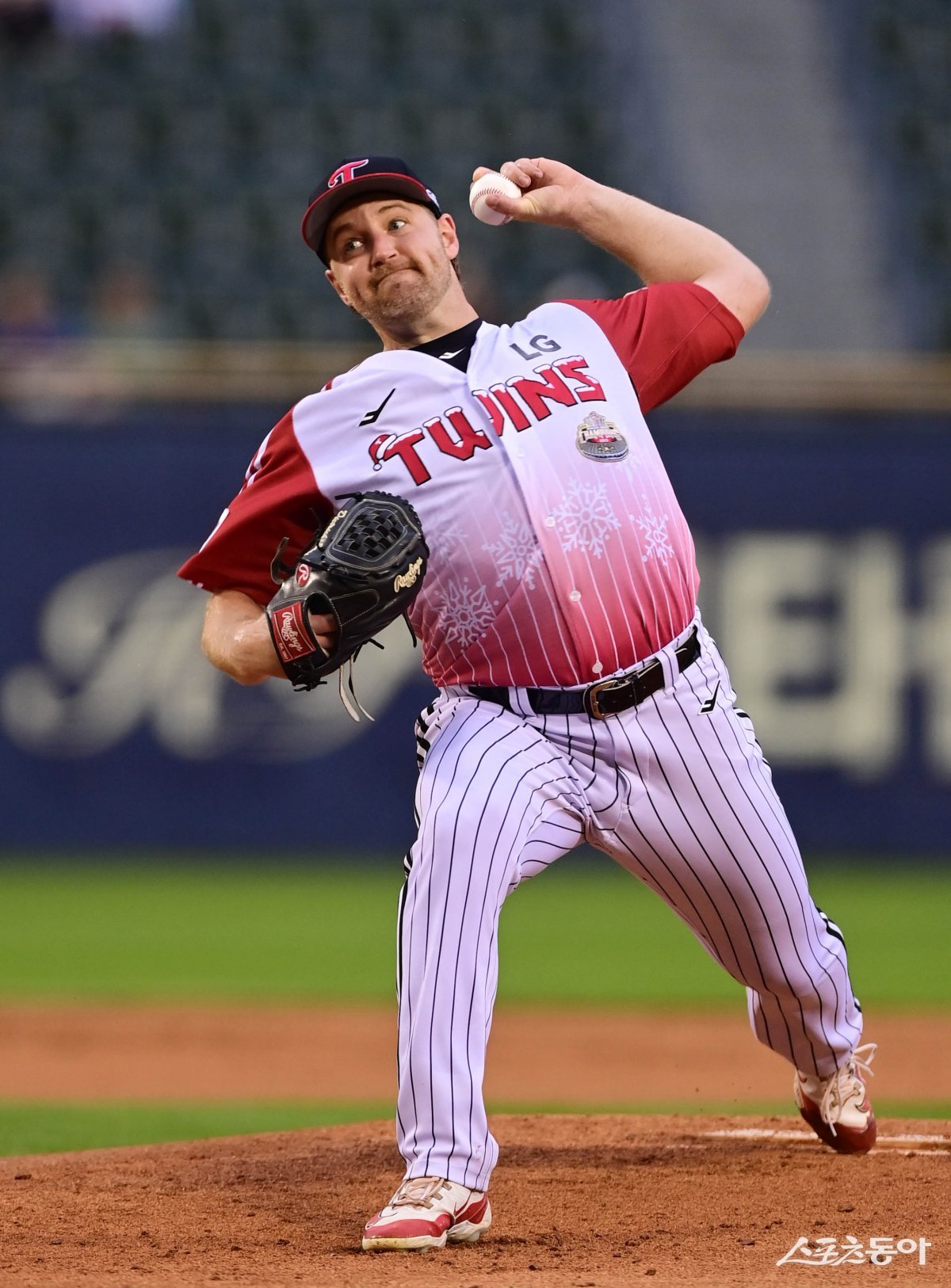 17일 서울 잠실야구장에서 열린 ‘2024 신한 SOL 뱅크 KBO리그’ SSG 랜더스와 LG 트윈스의 경기에서 LG 선발 투수 엔스가 마운드에 올라 역투하고 있다. 잠실 | 주현희 기자 teth1147@donga.com