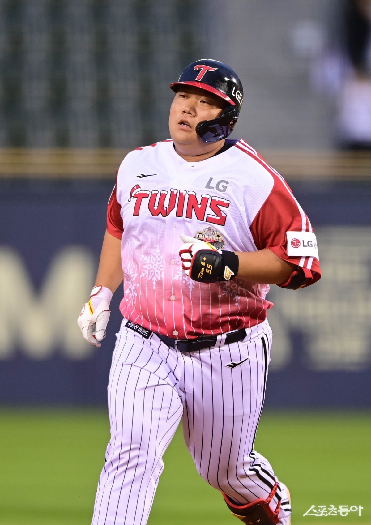 17일 서울 잠실야구장에서 열린 ‘2024 신한 SOL 뱅크 KBO리그’ SSG 랜더스와 LG 트윈스의 경기에서 3회말 1사 LG 김범석이 좌월 솔로 홈런을 친 후 그라운드를 돌고 있다. 잠실 | 주현희 기자 teth1147@donga.com