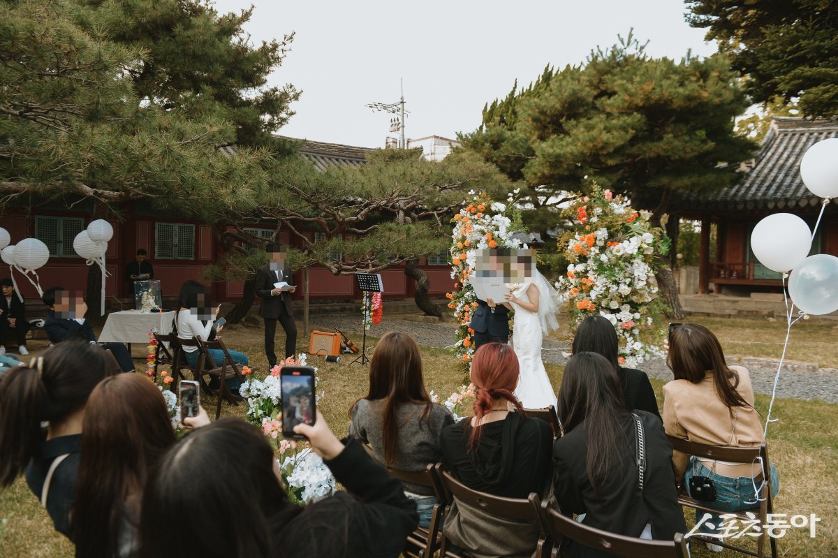 경주문화원 정원에서 진행된 ‘행복결혼식’ 모습./사진=경주시