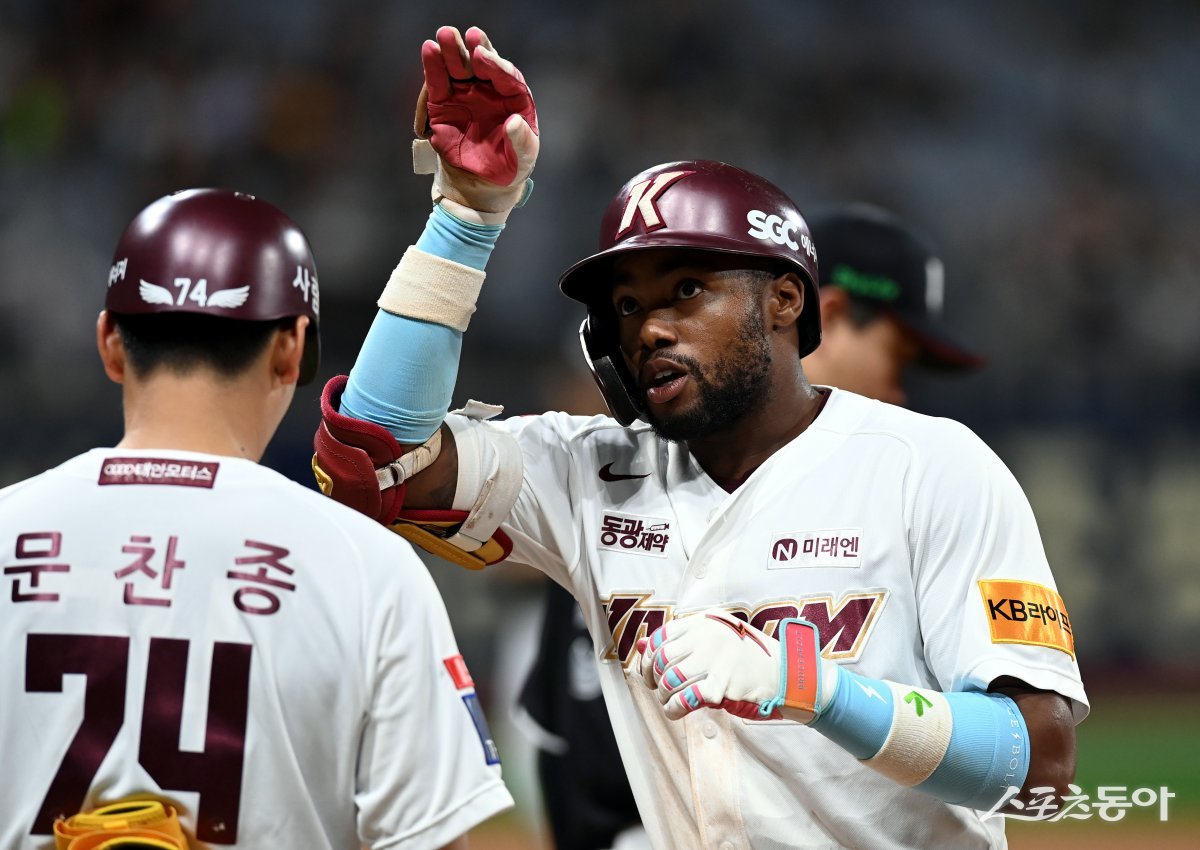 18일 서울 고척스카이돔에서 ‘2024 신한 SOL 뱅크 KBO리그’ 키움 히어로즈와 KT 위즈의 경기가 열렸다. 2회말 무사 1루에서 키움 도슨이 안타를 날린 후 세리머니를 펼치고 있다. 고척 | 김민성 기자 marineboy@donga.com