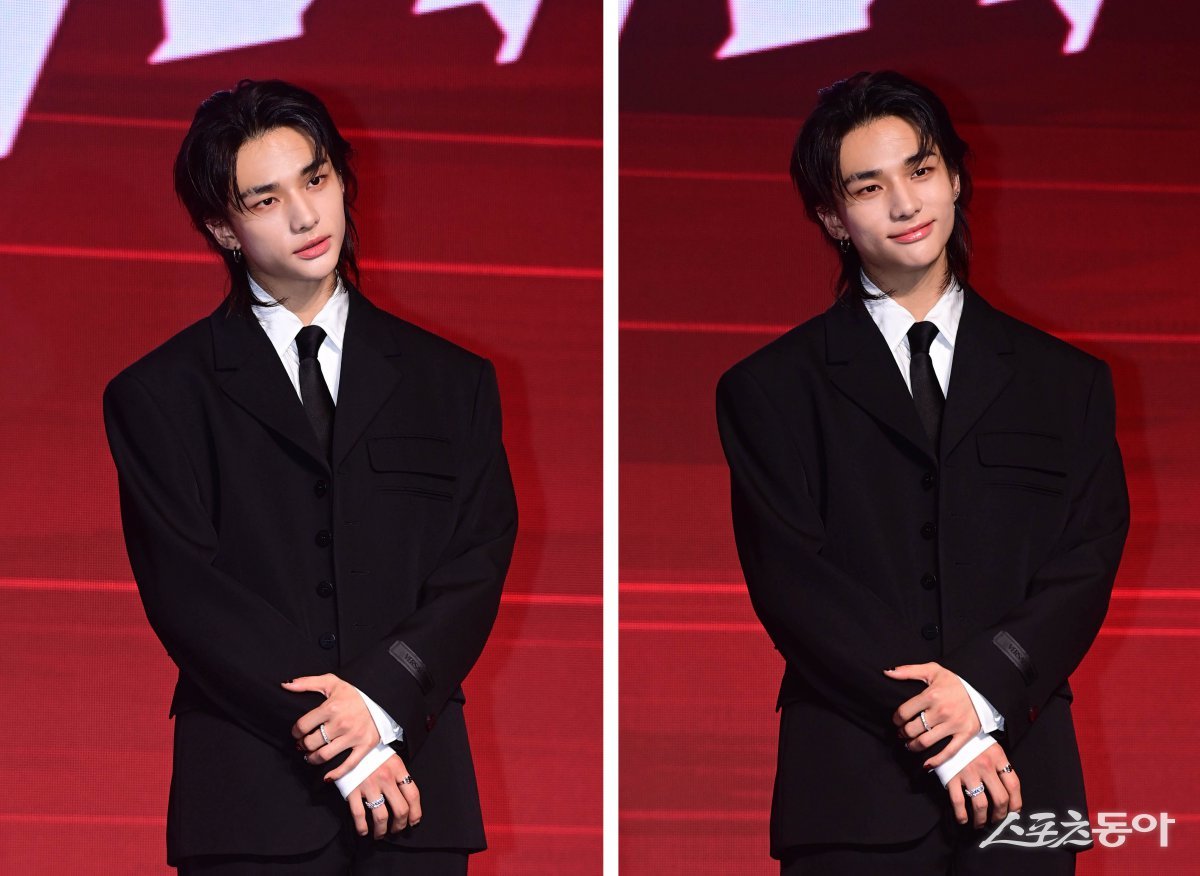 그룹 스트레이 키즈 현진이 19일 서울 영등포구 여의도동 콘래드 서울에서 열린 미니앨범 ‘ATE’ 발매 기념 기자간담회에서 포즈를 취하고 있다.