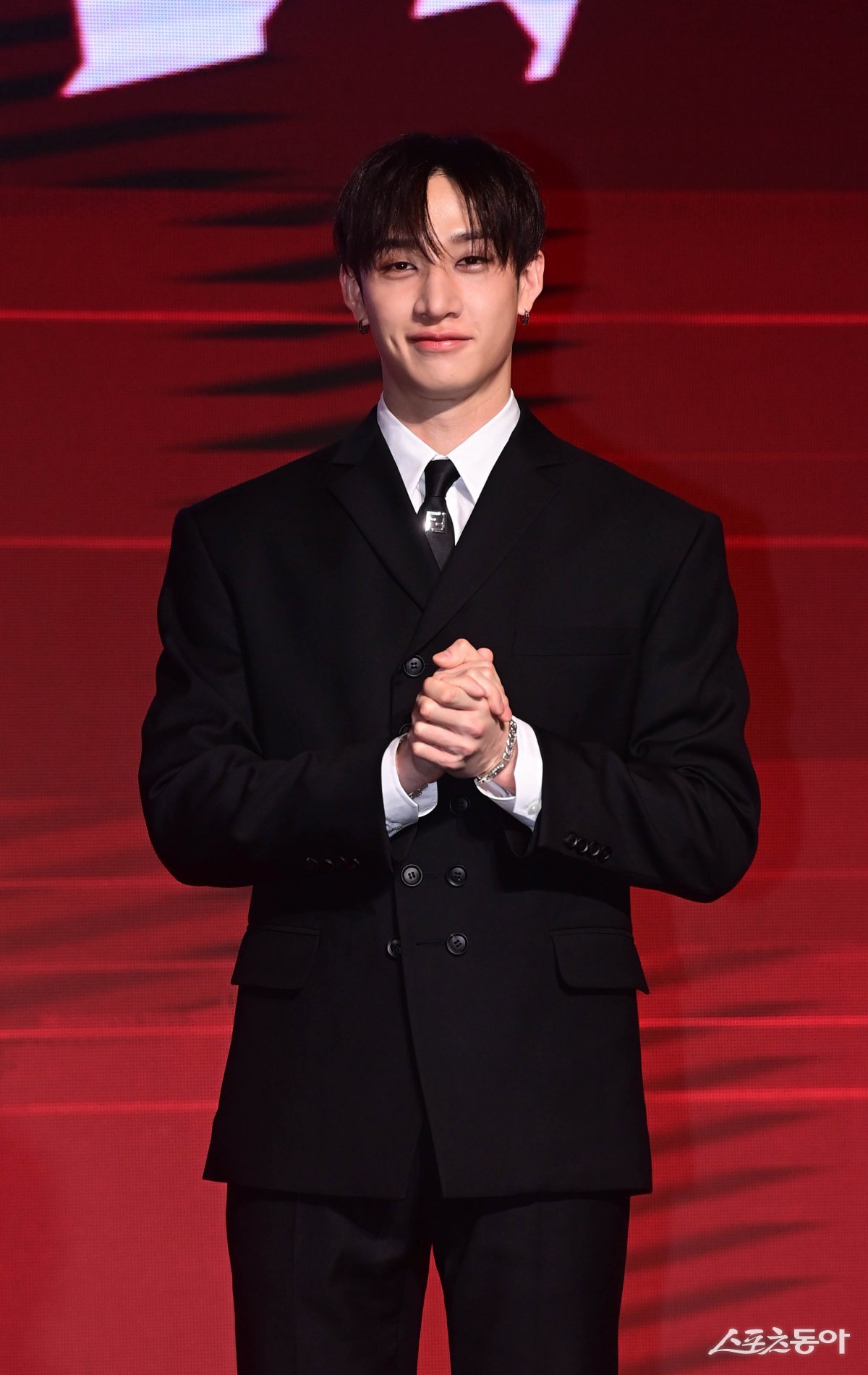 그룹 스트레이 키즈 방찬이 19일 서울 영등포구 여의도동 콘래드 서울에서 열린 미니앨범 ‘ATE’ 발매 기념 기자간담회에서 포즈를 취하고 있다.