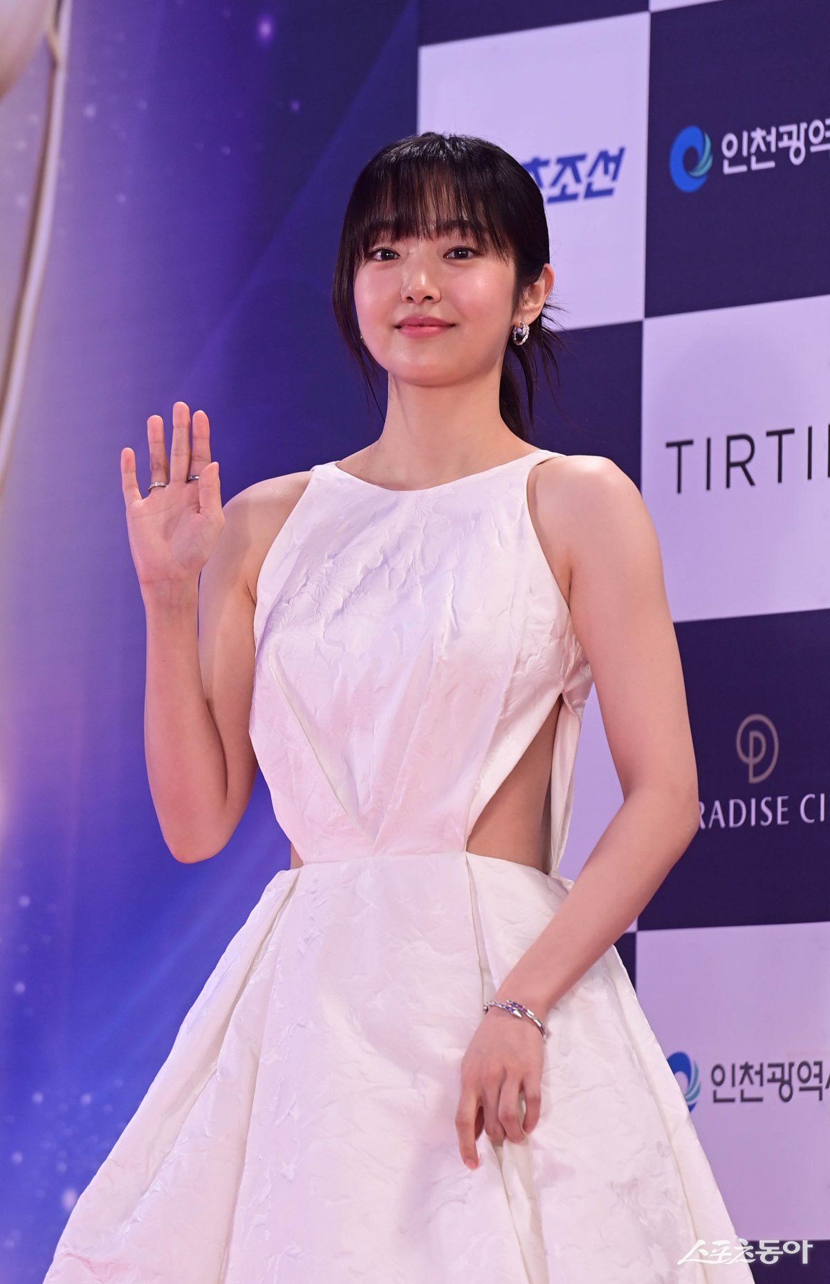 배우 김혜준이 19일 인천 중구 운서동 파라다이스시티에서 열린 ‘3회 청룡시리즈어워즈’ 레드카펫에서 포즈를 취하고 있다. 주현희 기자 teth1147@donga.com