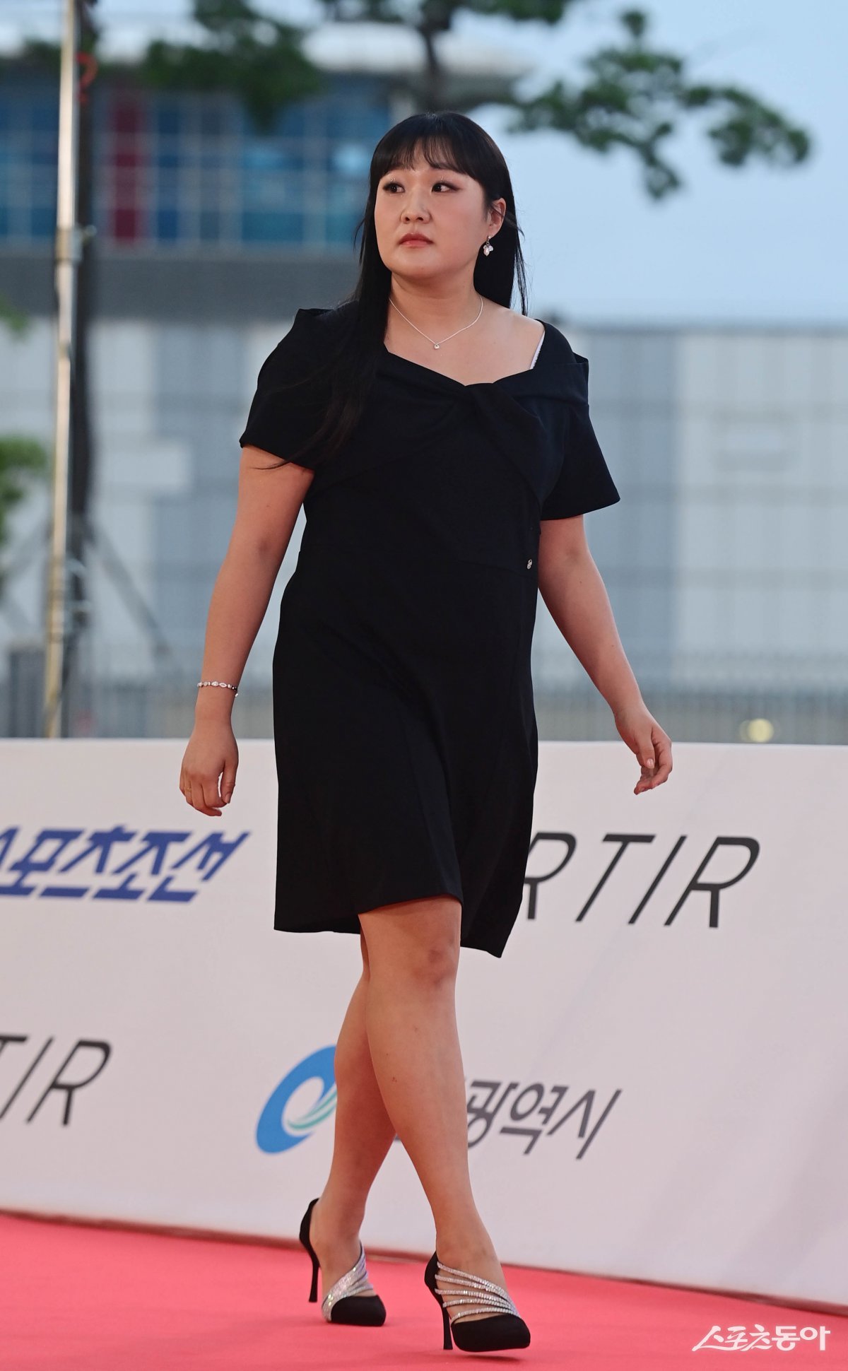 개그우먼 이수지가 19일 인천 중구 운서동 파라다이스시티에서 열린 ‘3회 청룡시리즈어워즈’ 레드카펫을 통해 입장하고 있다. 주현희 기자 teth1147@donga.com