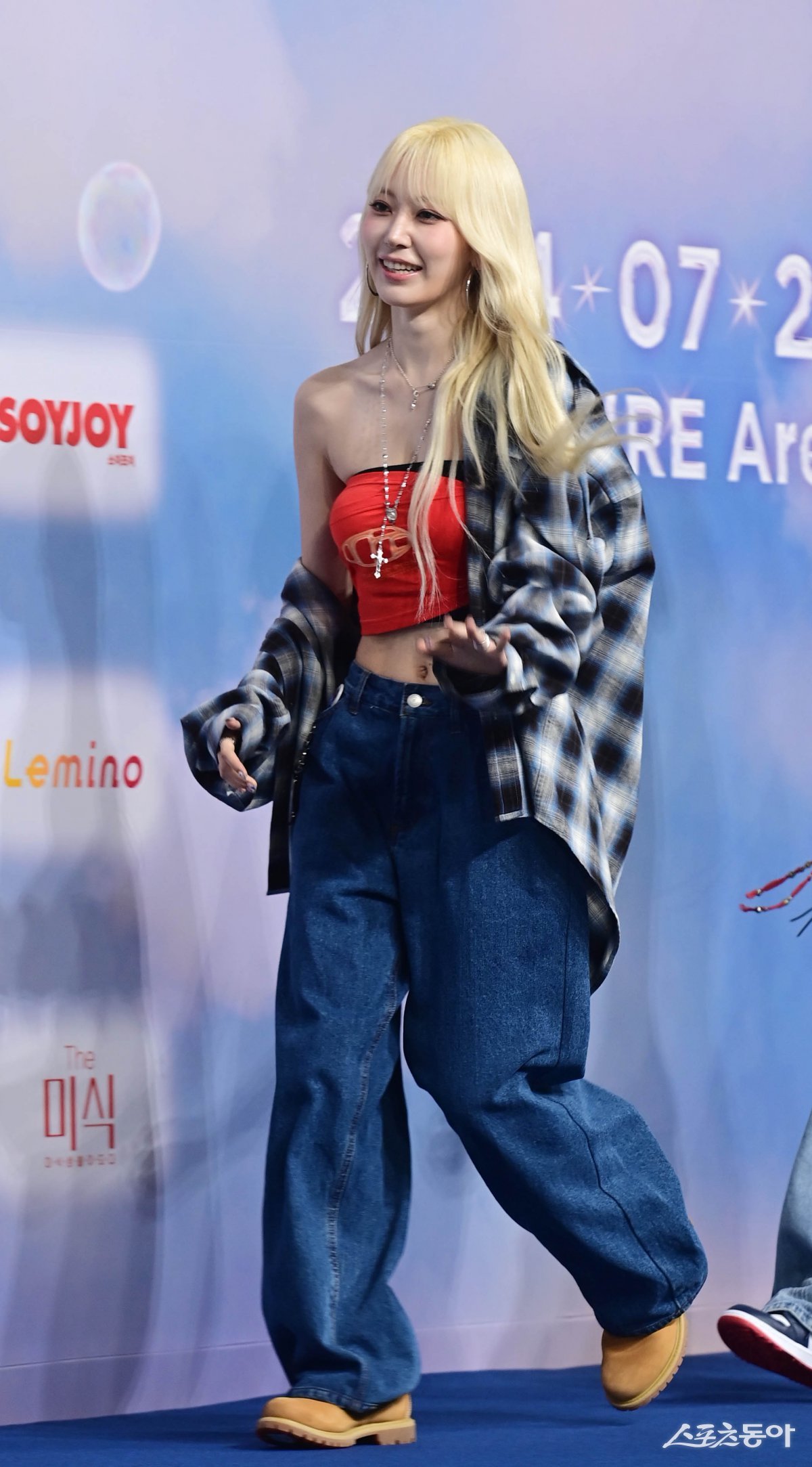 르세라핌 사쿠라가 21일 인천 중구 운서동 인스파이어 컨벤션에서 열린 ‘2024 SBS 가요대전 SUMMER’ 블루카펫을 통해 무대에 오르고 있다. 주현희 기자 teth1147@donga.com