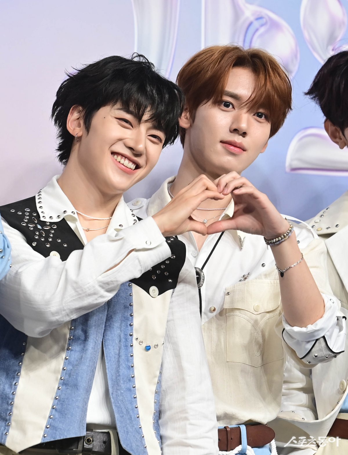 제로베이스원 석매튜, 한유진이 21일 인천 중구 운서동 인스파이어 컨벤션에서 열린 ‘2024 SBS 가요대전 SUMMER’ 블루카펫에서 포즈를 취하고 있다. 주현희 기자 teth1147@donga.com