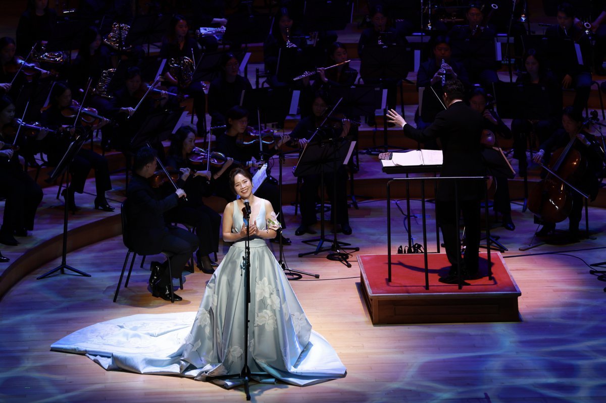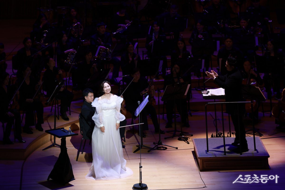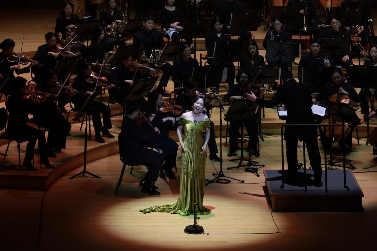 소프라노 김순영이 열창하는 모습. 이날 연주회는 최영선이 지휘하는 밀레니엄심포니오케스트라가 함께 했다.