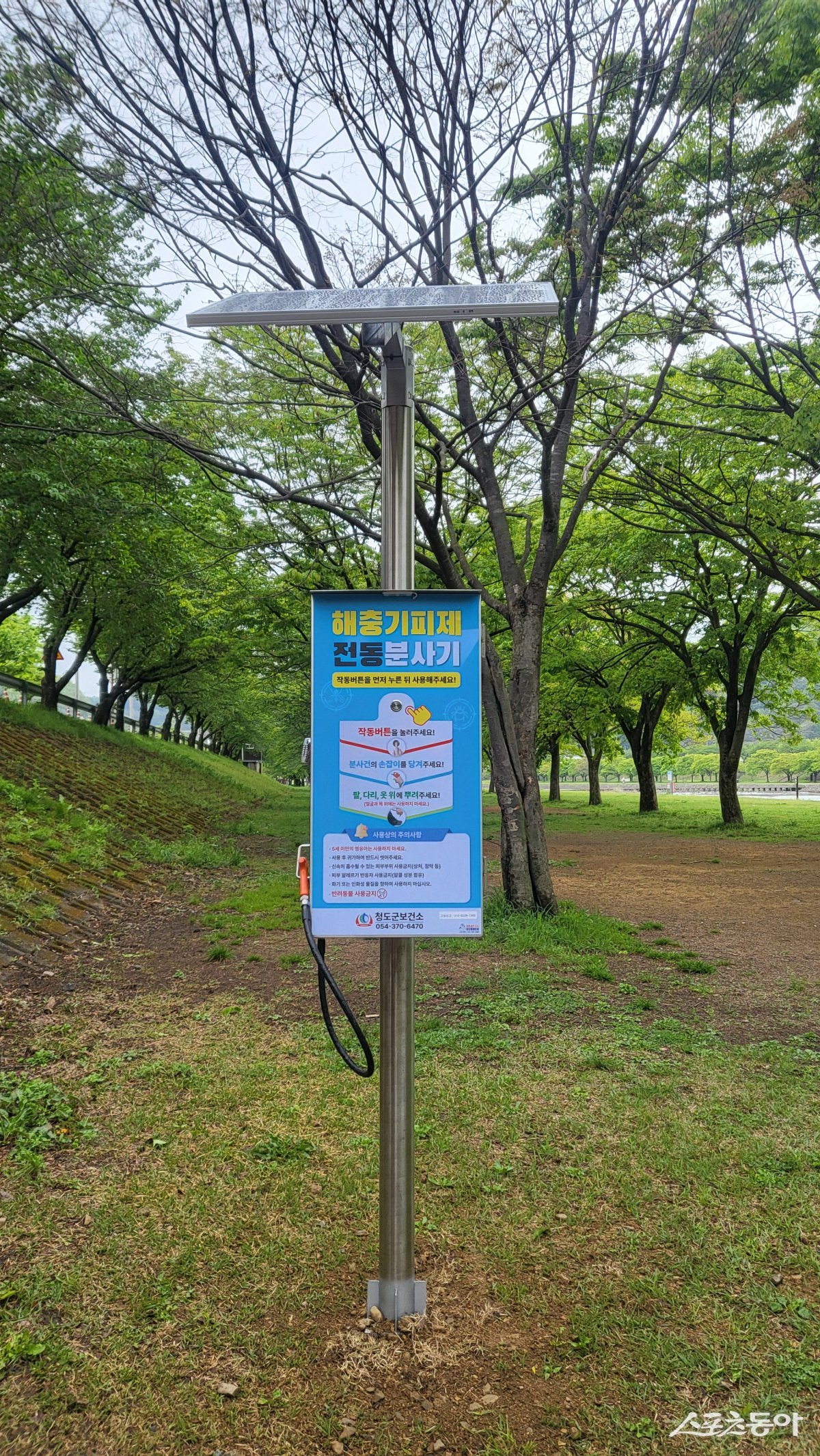 생태공원에 설치된 해충기피제 자동분사기 모습./사진=청도군