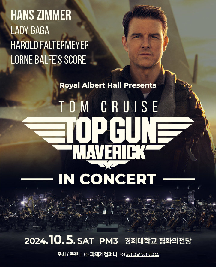 ‘탑건 매버릭 인 콘서트(Top Gun: Maverick in Concert)’는 9월 27일 영국 로얄 알버트홀에서 역사적인 첫 공연이 펼쳐질 예정. ‘탑건 매버릭 인 콘서트’ 서울 공연은 10월 5일 서울 경희대학교 평화의전당에서 해외 최초로 개최된다. 이후 11일부터 타이완, 프랑스, 스위스 등 유럽 투어가 차례로 열릴 예정이다.