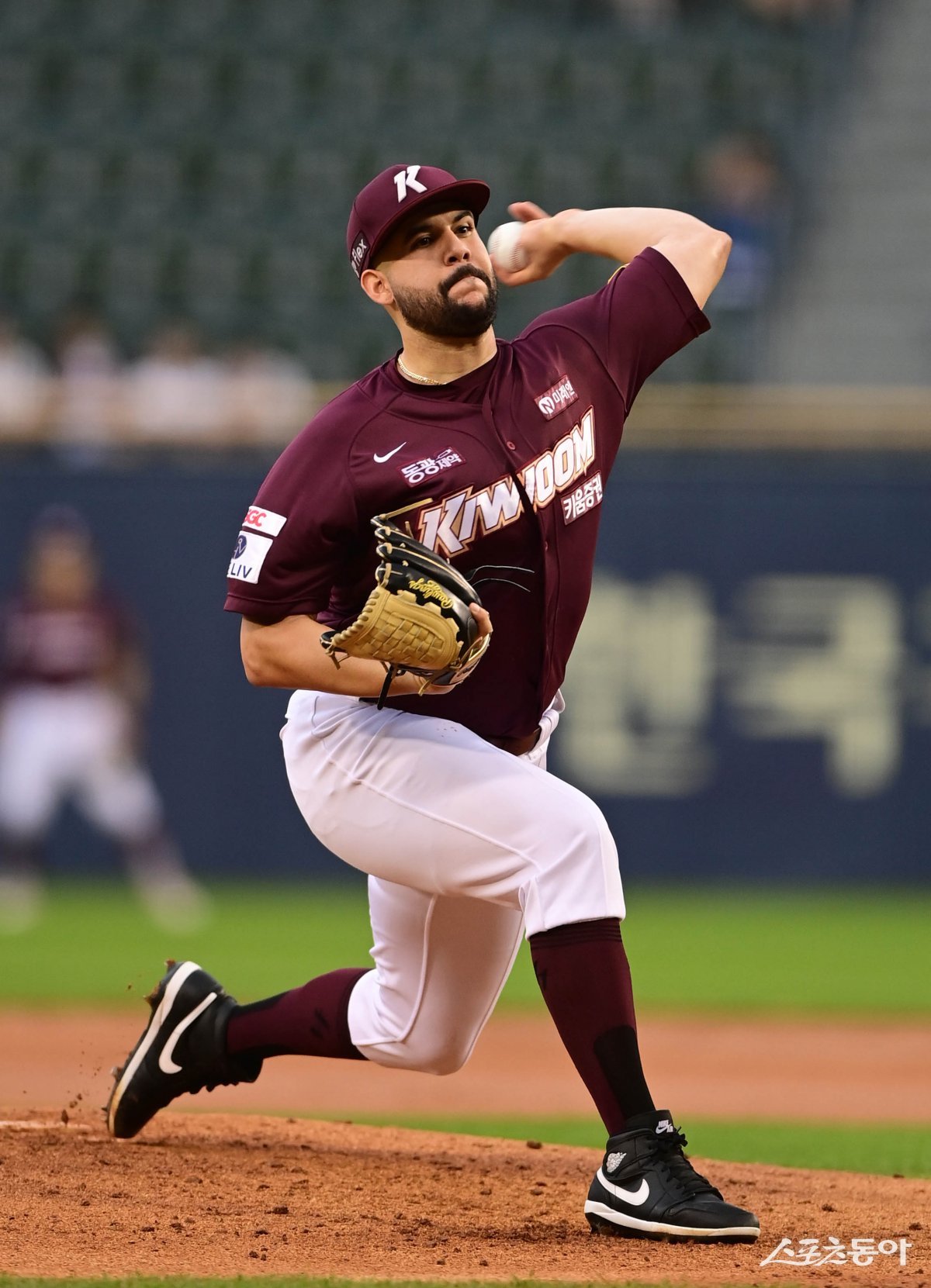 23일 서울 잠실야구장에서 열린 ‘2024 신한 SOL 뱅크 KBO리그’ 키움 히어로즈와 두산 베어스의 경기에서 키움 선발 투수 헤이수스가 마운드에 올라 역투하고 있다. 잠실 | 주현희 기자 teth1147@donga.com