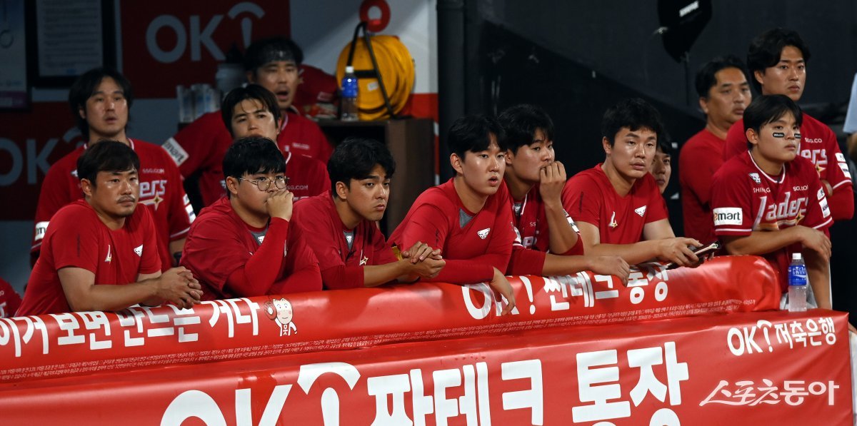 24일 경기도 수원 KT위즈파크에서 ‘2024 신한 SOL 뱅크 KBO리그’ KT 위즈와 SSG 랜더스의 경기가 열렸다. 3-5로 뒤진 9회초 SSG 마지막 공격 때 선수들이 더그아웃에서 경기를 지켜보고 있다. 수원 | 김민성 기자 marineboy@donga.com