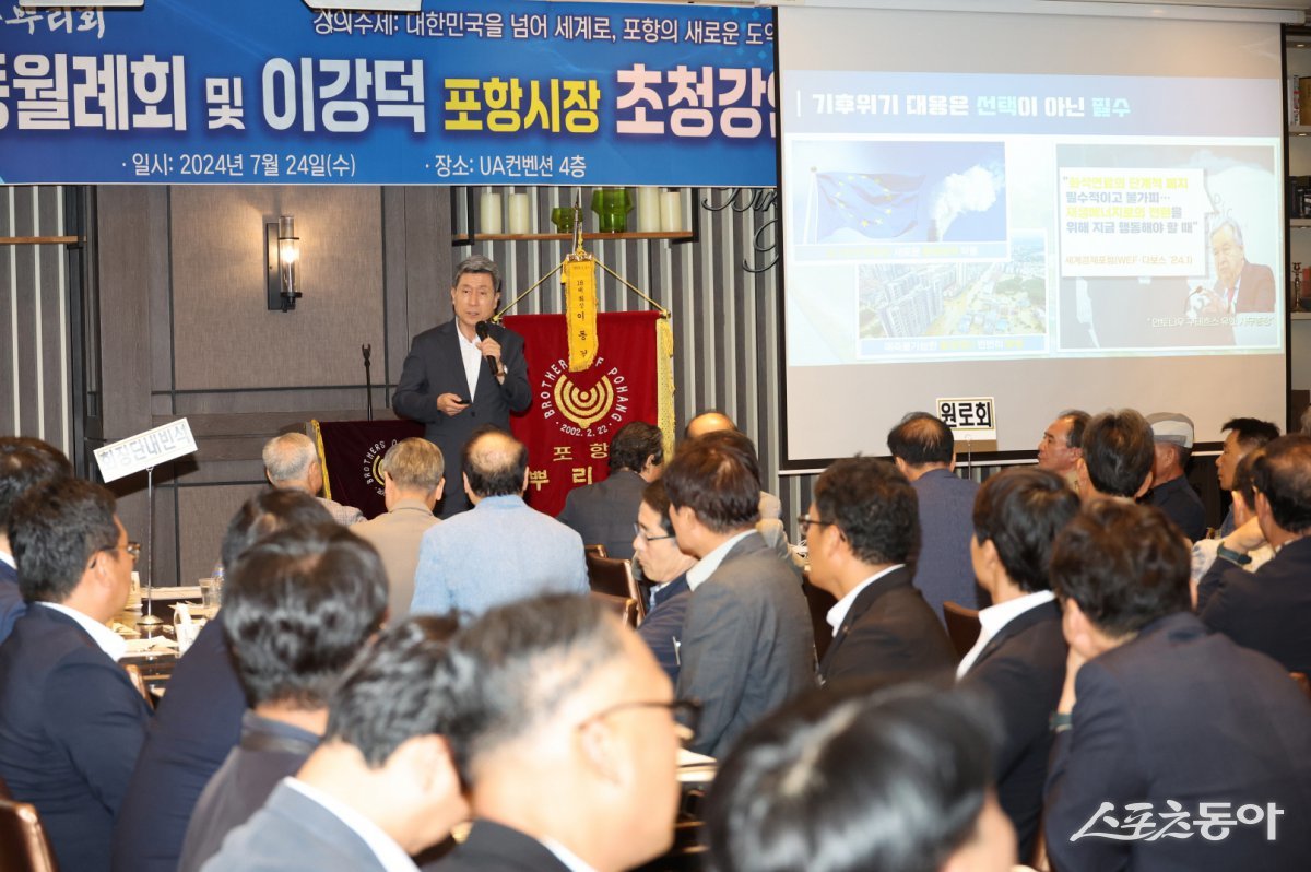 이강덕 포항시장은 24일 포항뿌리회 회원들의 초청을 받아 ‘대한민국을 넘어 세계로, 포항의 새로운 도약’을 주제로 포항의 발전 방향에 대한 명사 특강을 진행했다.