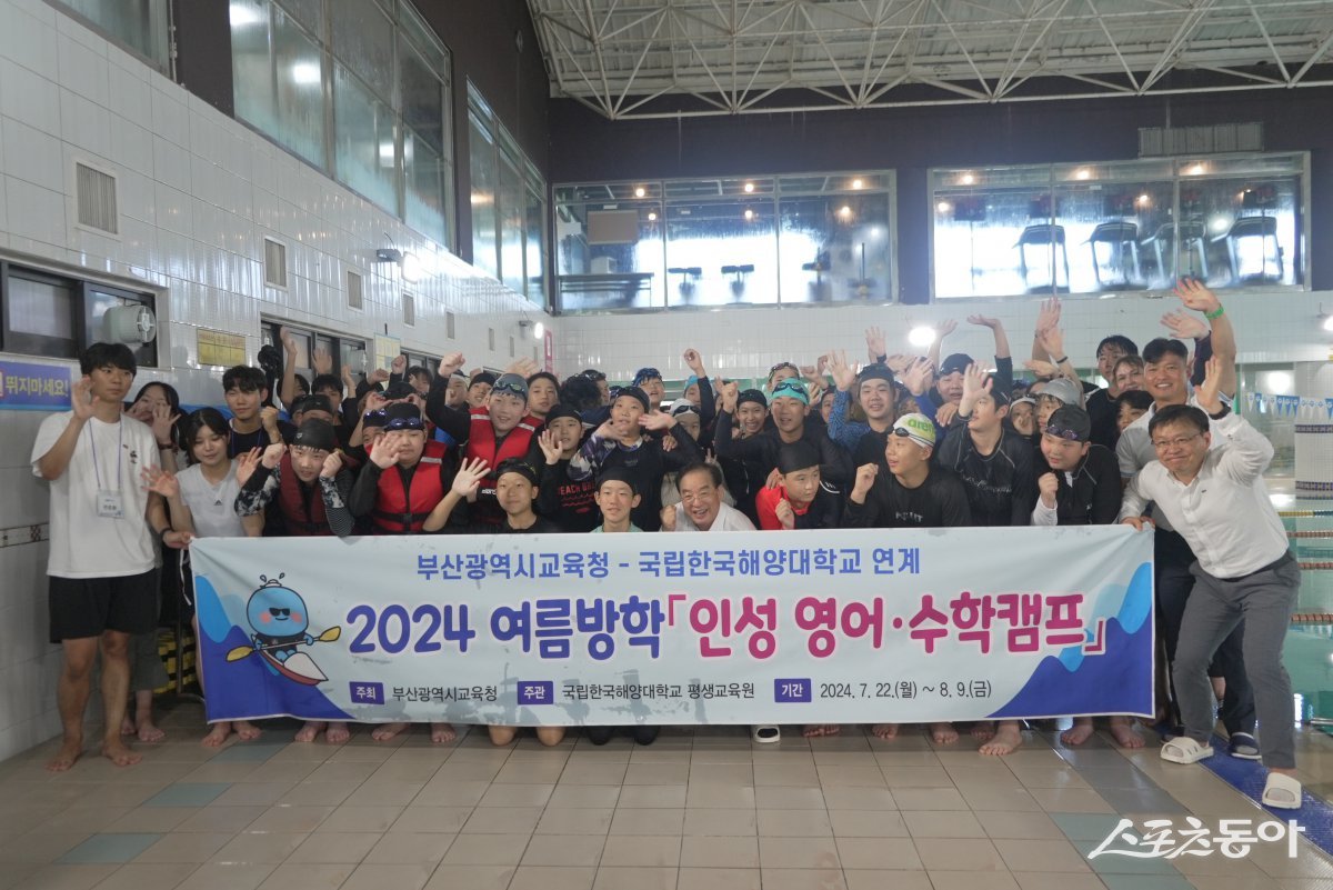 하윤수 부산시교육감이 지난 25일 대학 연계 숙박형 ‘인성 영수캠프’ 활동 현장인 한국해양대학교 레포츠센터(수영장)를 직접 방문해 학생들을 응원하고 격려했다.