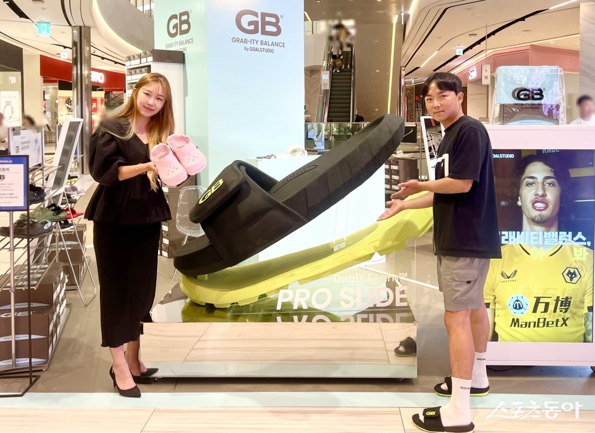 골스튜디오의 ‘그래비티 밸런스’는 그래비티 밸런스만의 특허받은 기술인 단단한 미드솔과 부드러운 아웃솔의 ‘DualX Foam ™’ 이중구조는 신체 밸런스 향상과 발 피로회복에 도움을 준다.