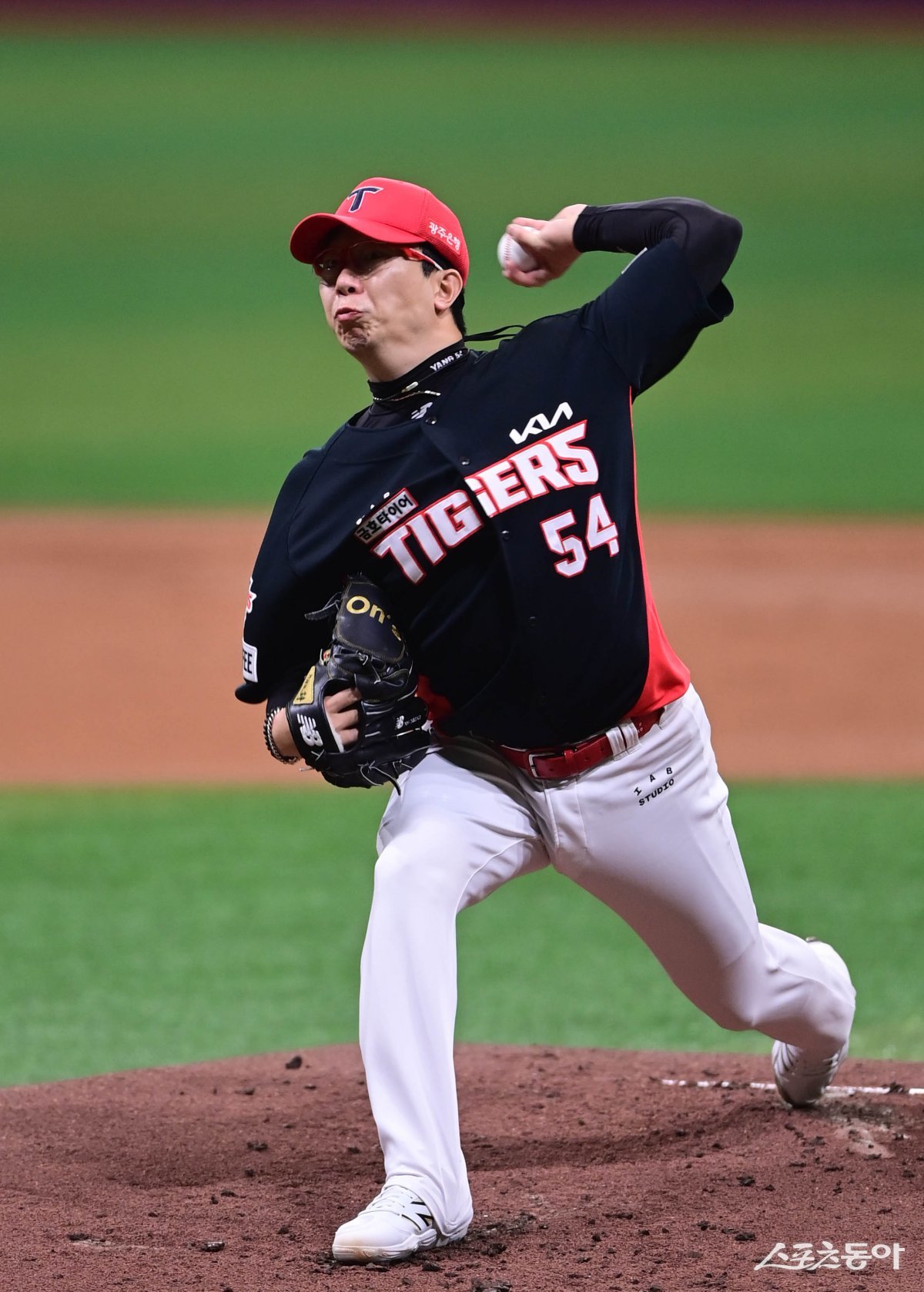 28일 서울 고척스카이돔에서 열린 ‘2024 신한 SOL 뱅크 KBO리그’ KIA 타이거즈와 키움 히어로즈의 경기에서 KIA 선발 투수 양현종이 마운드에 올라 역투하고 있다. 고척 | 주현희 기자 teth1147@donga.com