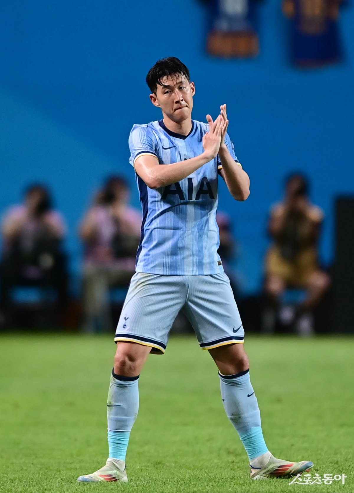 31일 서울월드컵경기장에서 열린 ‘2024 쿠팡플레이 시리즈’ 1차전 토트넘과 팀 K리그 경기에서 토트넘 손흥민이 교체되고 있다. 상암 | 주현희 기자 teth1147@donga.com