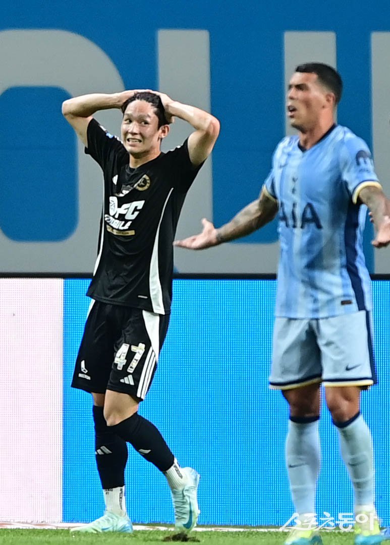 31일 서울월드컵경기장에서 열린 ‘2024 쿠팡플레이 시리즈’ 1차전 토트넘과 팀 K리그 경기에서 팀 K리그 양민혁이 골찬스를 놓친 후 아쉬워하고 있다. 상암 | 주현희 기자 teth1147@donga.com