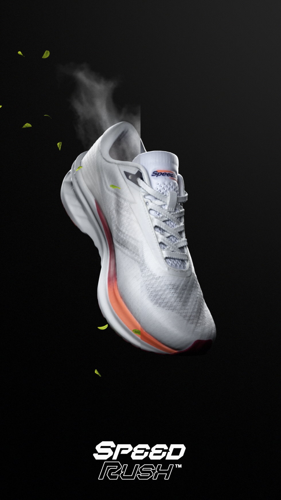 ‘스피드 러시’는 쿠셔닝, 경량성, 통기성에초점을 맞춰 더운 여름 날씨 로드 러닝에 최적화된 러닝화다. 발포 기술을 활용한 신규 개발 소재 슈퍼폼(Super Foam)의 미드솔(중창)로 도톰한 두께감과 탁월한 쿠셔닝을 느낄 수 있다.