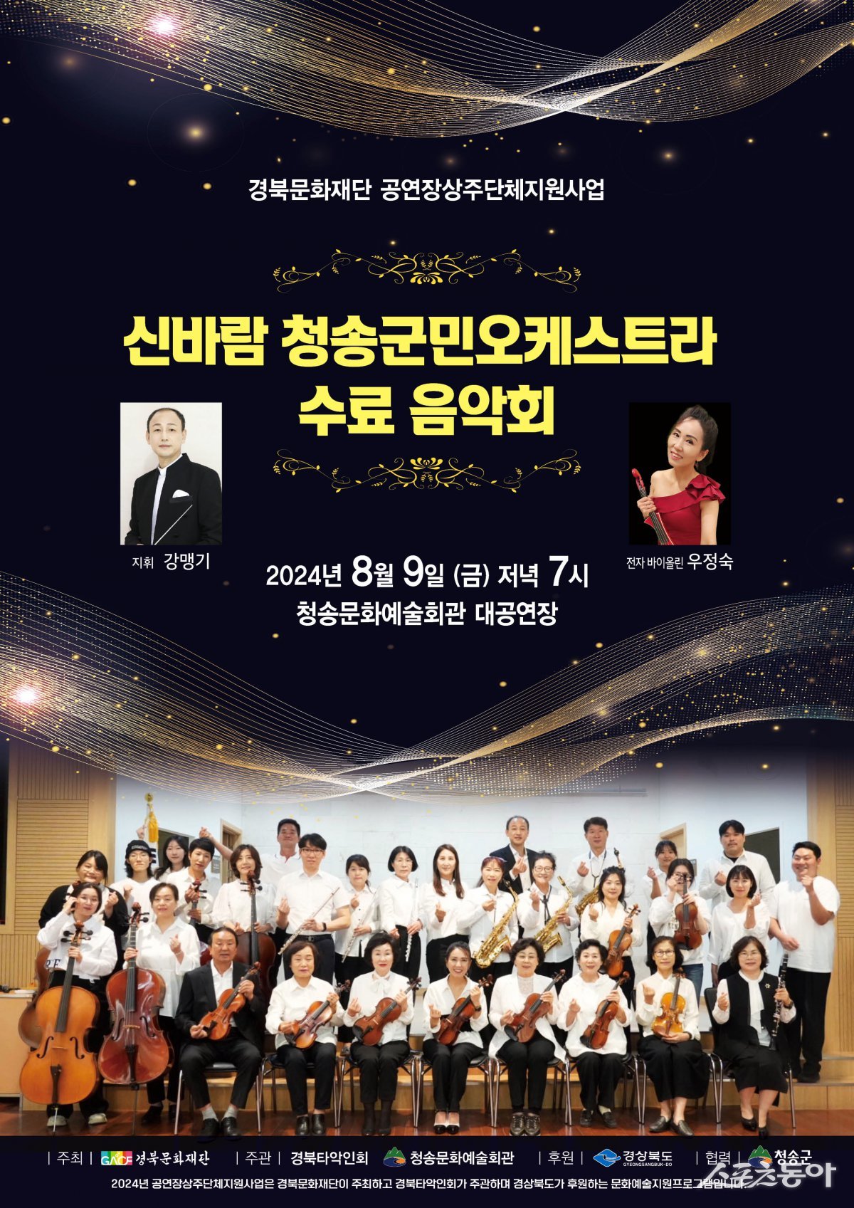 청송군(군수 윤경희)은 오는 9일 오후 7시 청송문화예술회관 대공연장에서 ‘신바람 청송군민 오케스트라 수료 음악회’를 개최한다고 8일 밝혔다.