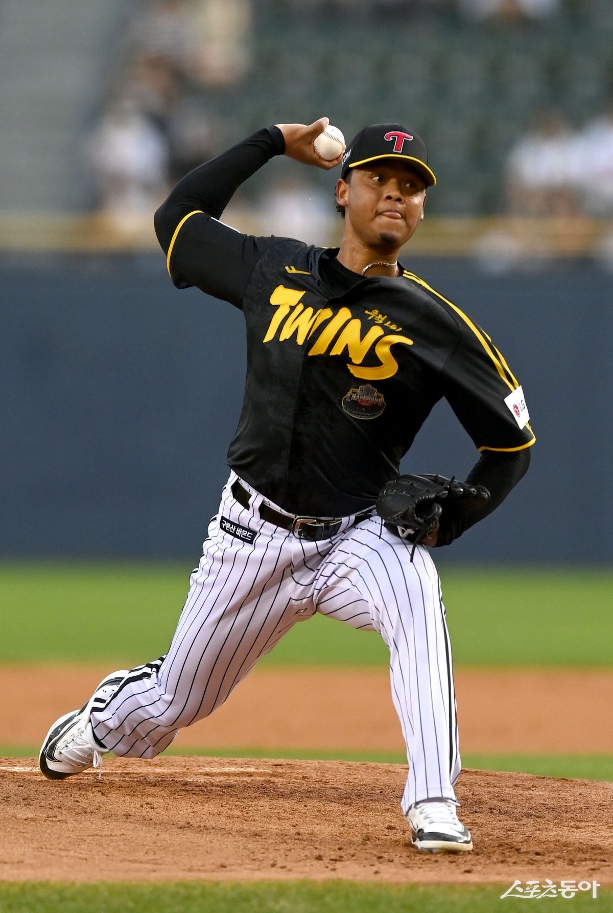 8일 서울 잠실야구장에서 ‘2024 신한은행 SOL뱅크 KBO리그’ LG 트윈스와 두산 베어스 경기가 열렸다. 선발 투수로 등판한 LG 에르난데스가 역투하고 있다. 잠실|김종원 기자 won@donga.com