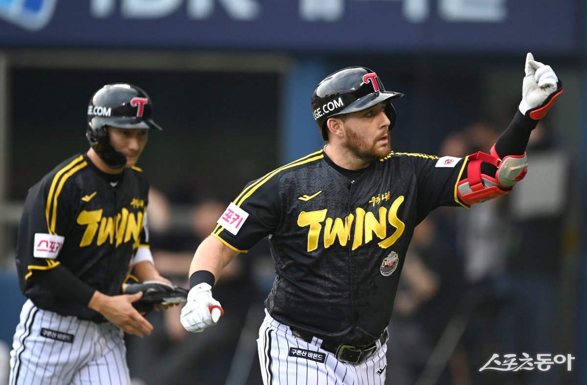 8일 서울 잠실야구장에서 ‘2024 신한은행 SOL뱅크 KBO리그’ LG 트윈스와 두산 베어스 경기가 열렸다. 1회초 1사 1루 LG 오스틴이 좌월 투런 홈런을 날리고 그라운드를 돌아 홈인해 기뻐하고 있다. 잠실|김종원 기자 won@donga.com