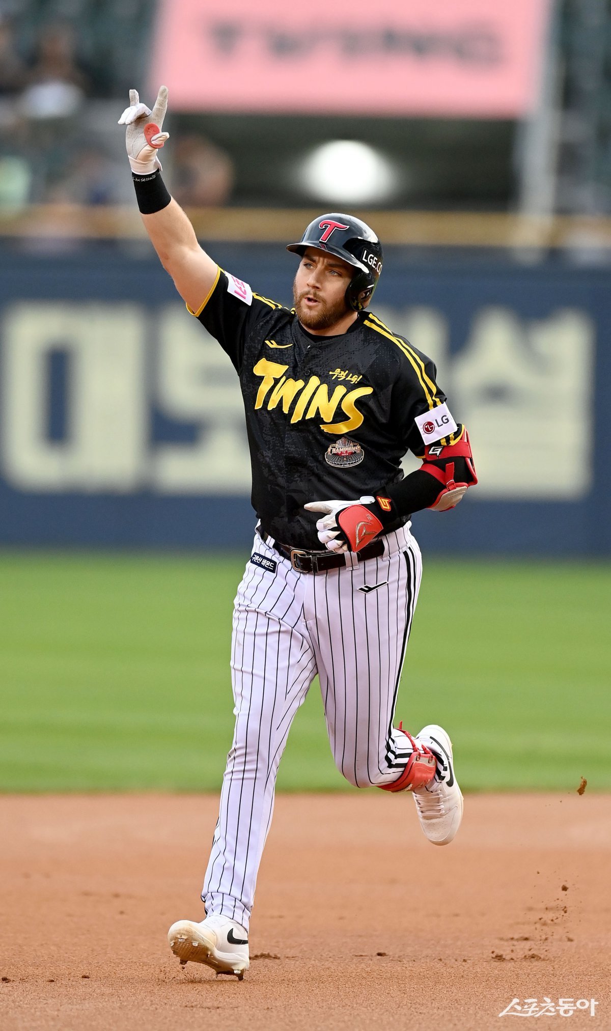 8일 서울 잠실야구장에서 ‘2024 신한은행 SOL뱅크 KBO리그’ LG 트윈스와 두산 베어스 경기가 열렸다. 1회초 1사 1루 LG 오스틴이 좌월 투런 홈런을 날리고 그라운드를 돌며 기뻐하고 있다. 잠실|김종원 기자 won@donga.com