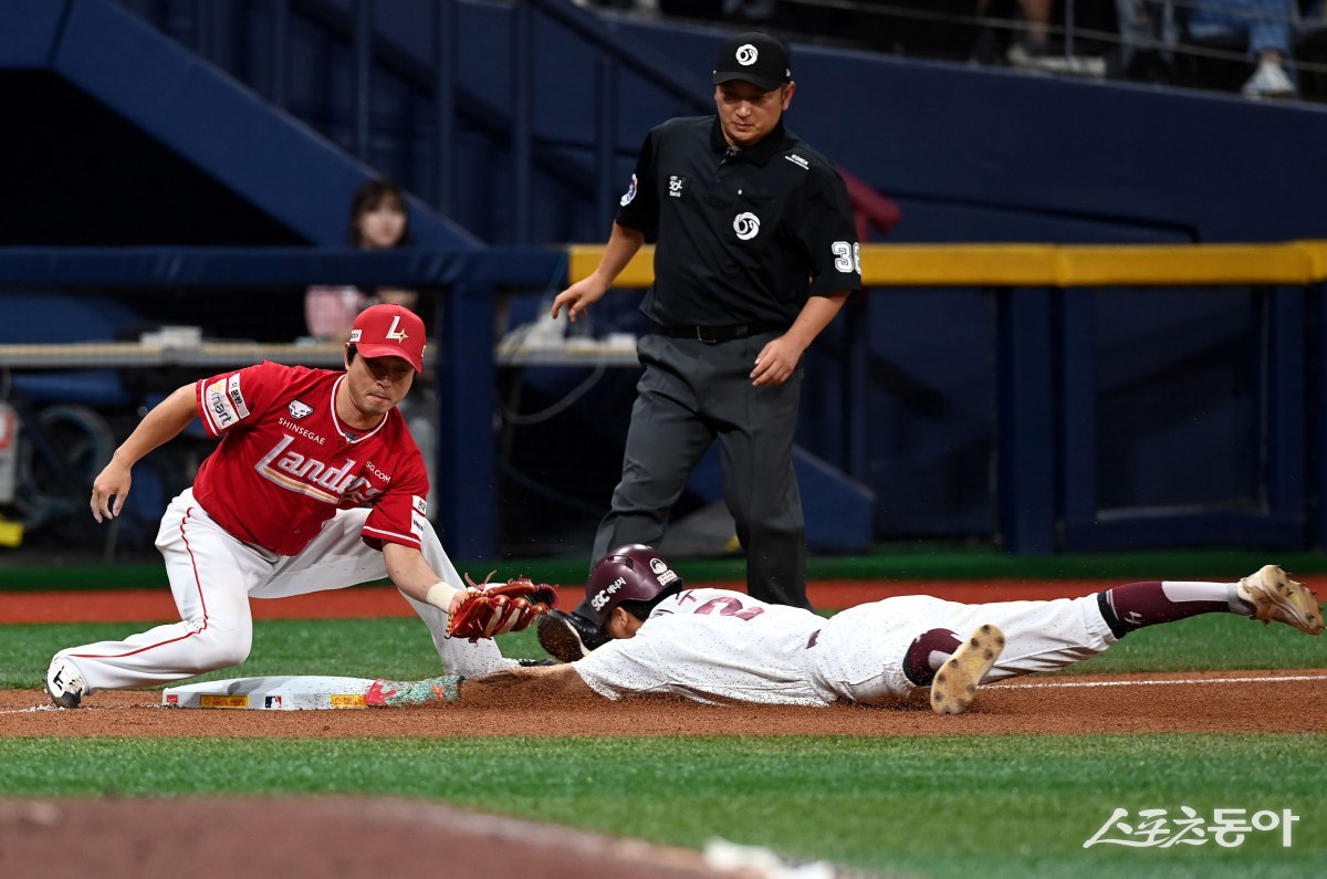 8일 서울 고척스카이돔에서 ‘2024 신한 SOL 뱅크 KBO리그’ 키움 히어로즈와 SSG 랜더스의 경기가 열렸다. 6회말 1사 2루에서 키움 이주형이 3루 도루를 성공하고 있다. 고척 | 김민성 기자 marineboy@donga.com
