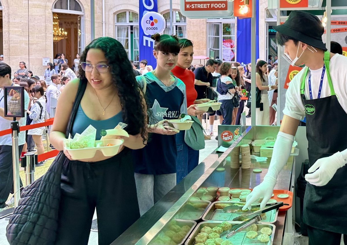 ]CJ제일제당의 파리 ‘비비고 시장’에서 방문객들이 K-푸드를 주문하고 있는 모습. 사진제공 |CJ제일제당