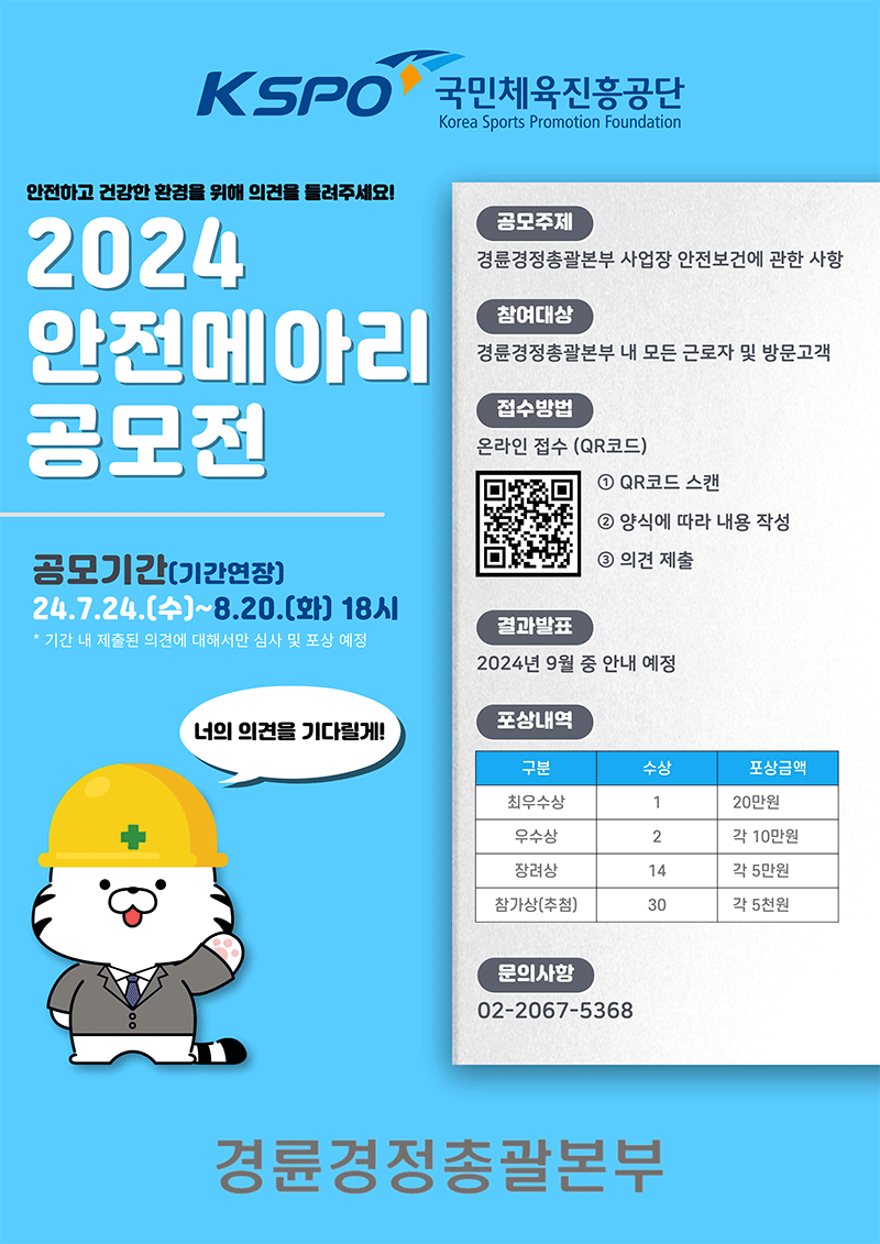 서울올림픽기념국민체육진흥공단(이사장 조현재) 경륜경정총괄본부는 ‘안전 메아리 공모전’을 실시한다.
