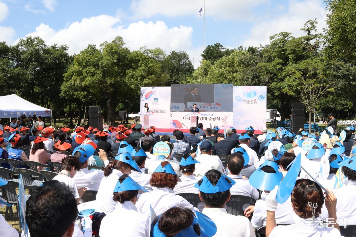이날 황성공원 내 독산 국기게양대 앞에서 열린 행사는 제79회 광복절과 최근 공사가 마무리된 국기게양대 준공을 기념하기 위해 마련됐다.