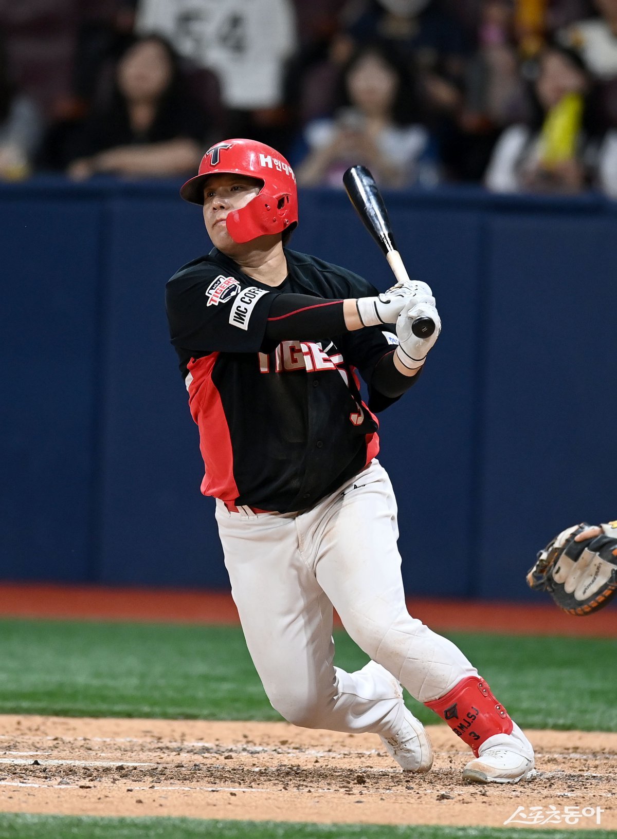 15일 서울 고척스카이돔에서 ‘2024 신한은행 SOL뱅크 KBO리그’ KIA 타이거즈와 키움 히어로즈 경기가 열렸다. 7회초 1사 3루 KIA 김선빈이 1타점 적시타를 치고 있다. 고척|김종원 기자 won@donga.com