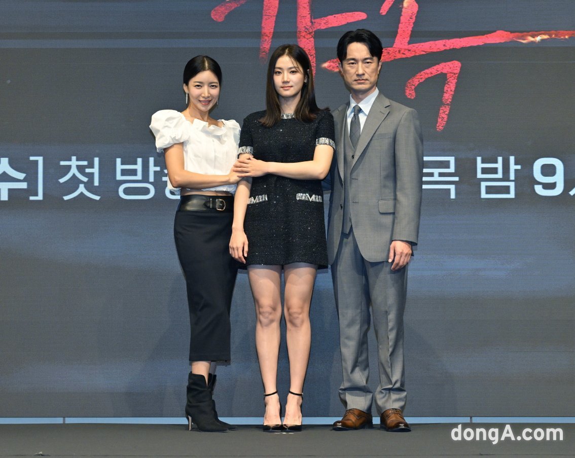 김병철, 윤세아, 박주현이 14일 오후 서울 구로구 신도림 더 세인트에서 진행된 KBS 2TV 새 수목드라마 ‘완벽한 가족’ 제작발표회에서 포즈를 취하고 있다.