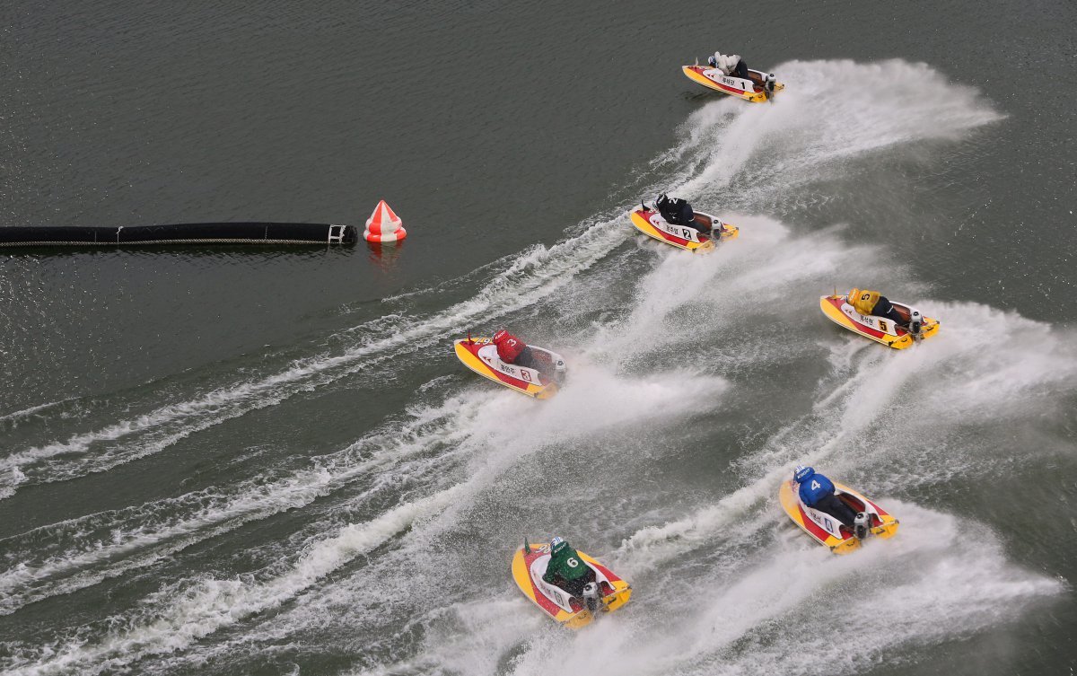 미사리경정장에서 출전 선수들이 1턴 마크를 돌며 경합을 벌이고 있다. 하반기 들어 노장급과 신진급에서 기대 안했던 깜짝 활약을 펼치는 선수들이 등장하고 있다 사진제공|국민체육진흥공단