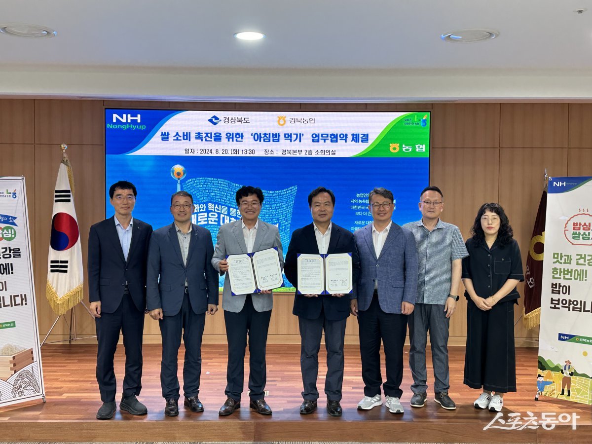 경상북도와 농협경제지주 경북본부는 20일 경북농협 회의실에서 경북 쌀 소비 촉진을 위한 ‘범국민 아침밥 먹기 운동’ 업무협약을 체결했다.
