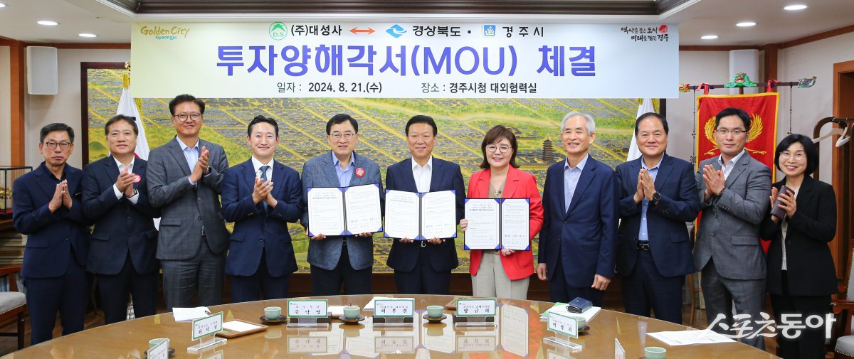 경상북도와 경주시는 21일 ㈜대성사와 경주시청에서 양금희 경상북도 경제부지사, 주낙영 경주시장, ㈜대성사 허부걸 대표이사 등이 참석한 가운데 자동차용 차체 부품 생산공장 건립을 내용으로 하는 투자양해각서(MOU)를 체결했다.