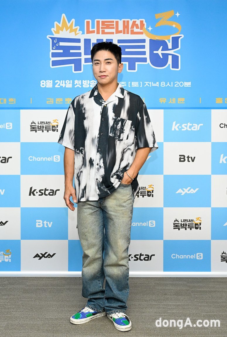 유세윤이 22일 오전 서울시 중구 퇴계로 SK남산그린빌딩에서 진행된 ‘니돈내산 독박투어3’ 기자간담회에서 포즈를 취하고 있다.