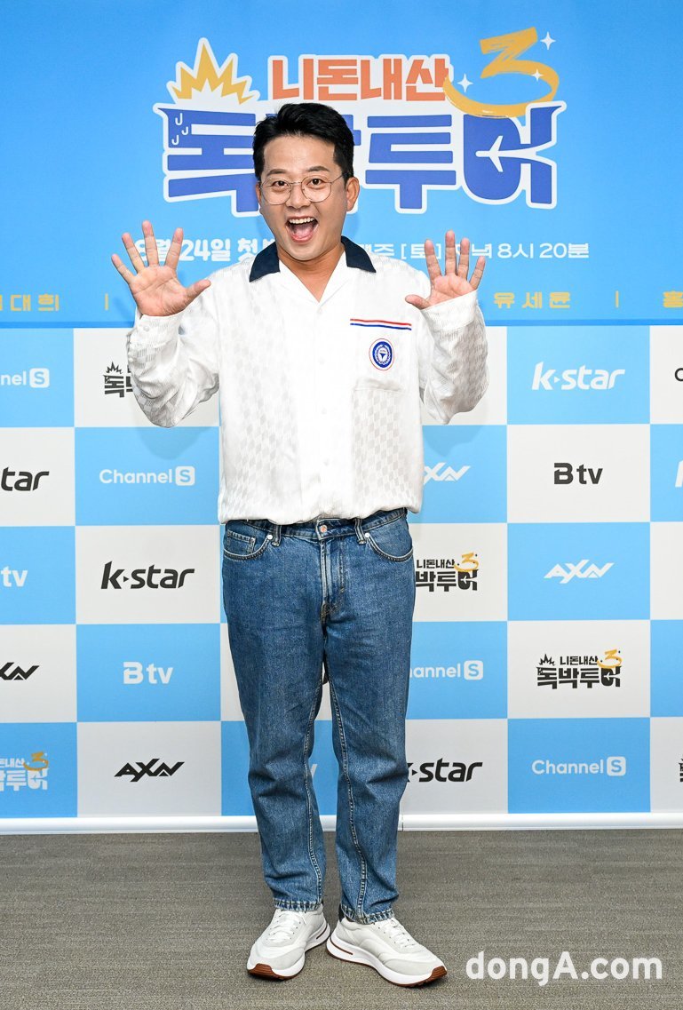 김준호가 22일 오전 서울시 중구 퇴계로 SK남산그린빌딩에서 진행된 ‘니돈내산 독박투어3’ 기자간담회에서 포즈를 취하고 있다.