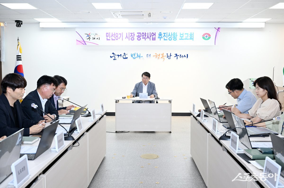 구리시(시장 백경현) 지난 21일 시청 상황실에서 시민과의 약속인 공약사업의 추진 상황을 점검하기 위한 ‘민선8기 공약사업 추진보고회’를 개최했다.