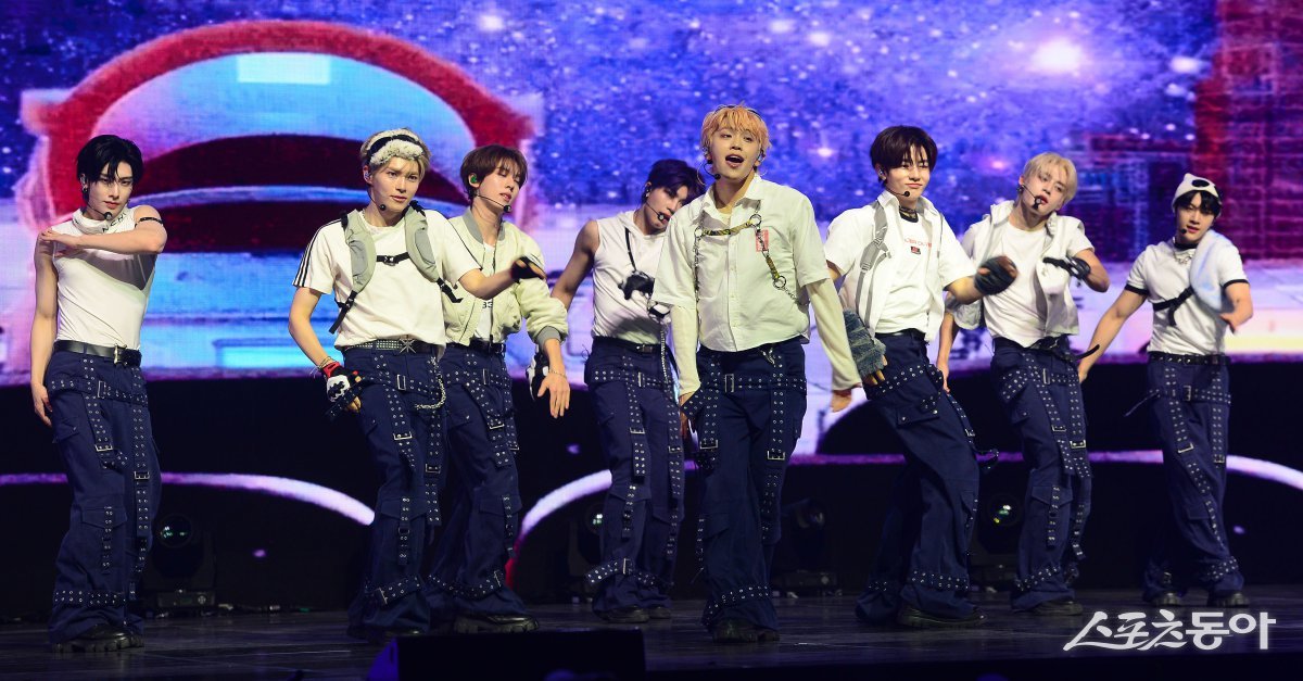 제로베이스원 미니 4집 ‘CINEMA PARADISE(시네마 천국)’ 발매 기념 쇼케이스가 26일 서울 용산구 한남동 블루스퀘어에서 열렸다. 제로베이스원이 화려한 공연을 펼치고 있다. 김민성 기자 marineboy@donga.com