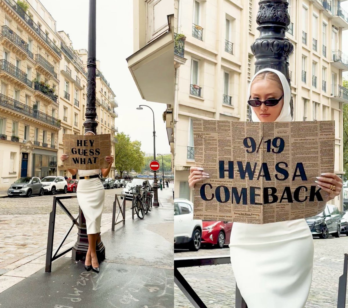 신보 발매 소식과 함께 9일 정오 피네이션 공식 SNS 채널에는 화사의 컴백을 알리는 ‘GUESS WHAT(게스 왓)’ 숏폼 콘텐츠가 공개됐다. 영상 속 화사는 신문을 든 채 선글라스와 화이트 원피스 매치로 매혹적인 아우라를 풍기는가 하면, 컴백 일자 오픈과 동시에 매력적인 윙크까지 선사하며 추후 프로모션에 대한 기대감을 더했다.