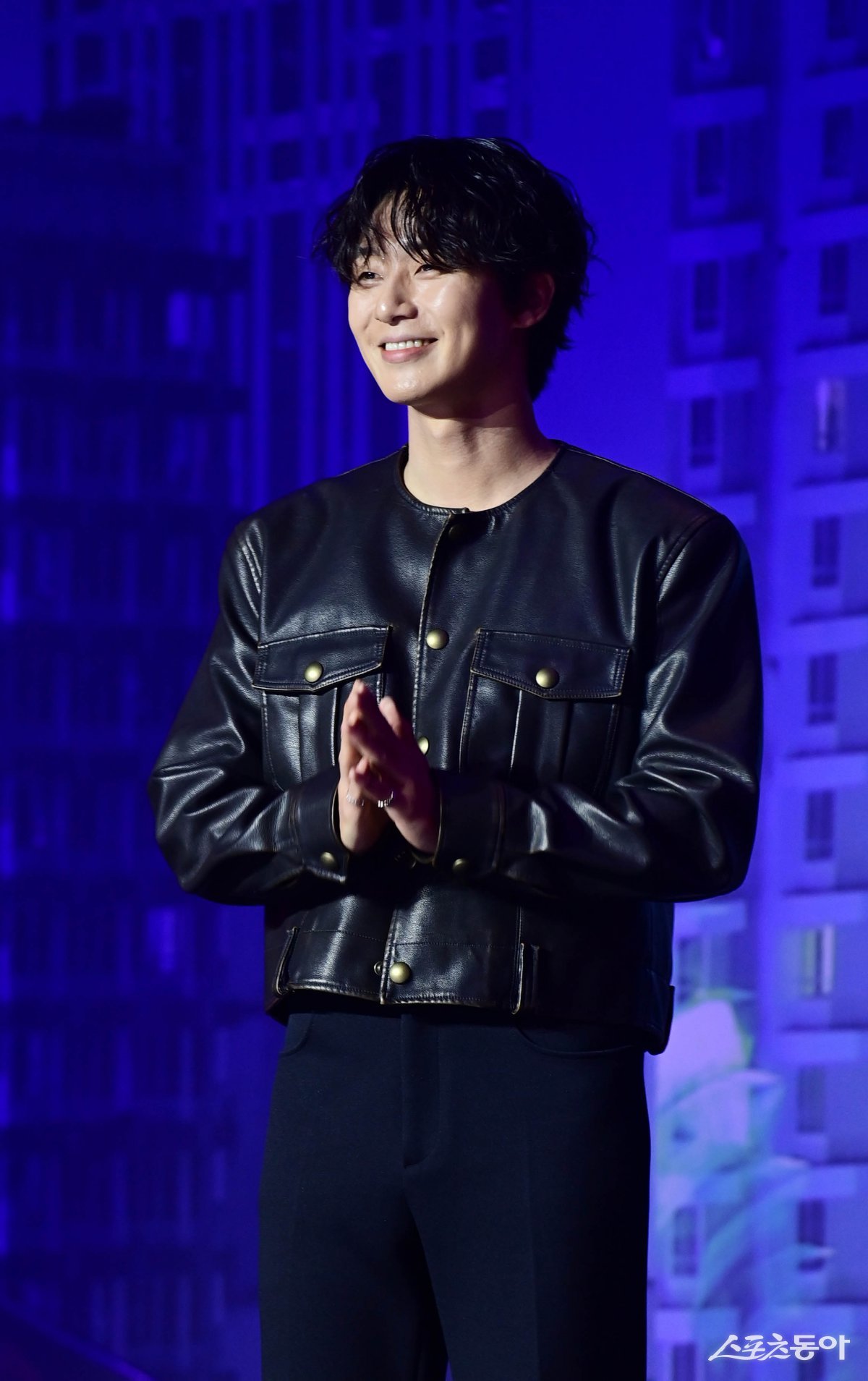 배우 박서준이 25일 서울 용산구 서울드래곤시티에서 열린 넷플릭스 시리즈 ‘경성크리처’ 시즌2 제작발표회에서 포즈를 취하고 있다. 주현희 기자 teth1147@donga.com