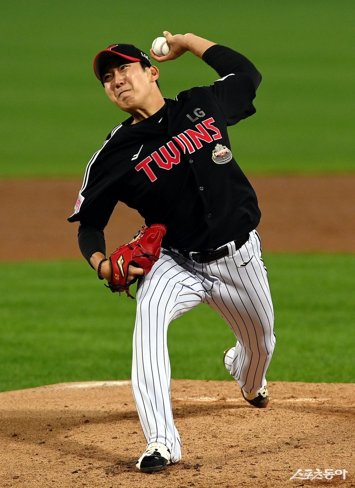 15일 대구 삼성라이온즈파크에서 ‘2024 신한 SOL 뱅크 KBO리그’ PO 2차전 경기가 열렸다. LG 선발투수 손주영이 힘차게 볼을 던지고 있다. 대구 | 김민성 기자 marineboy@donga.com