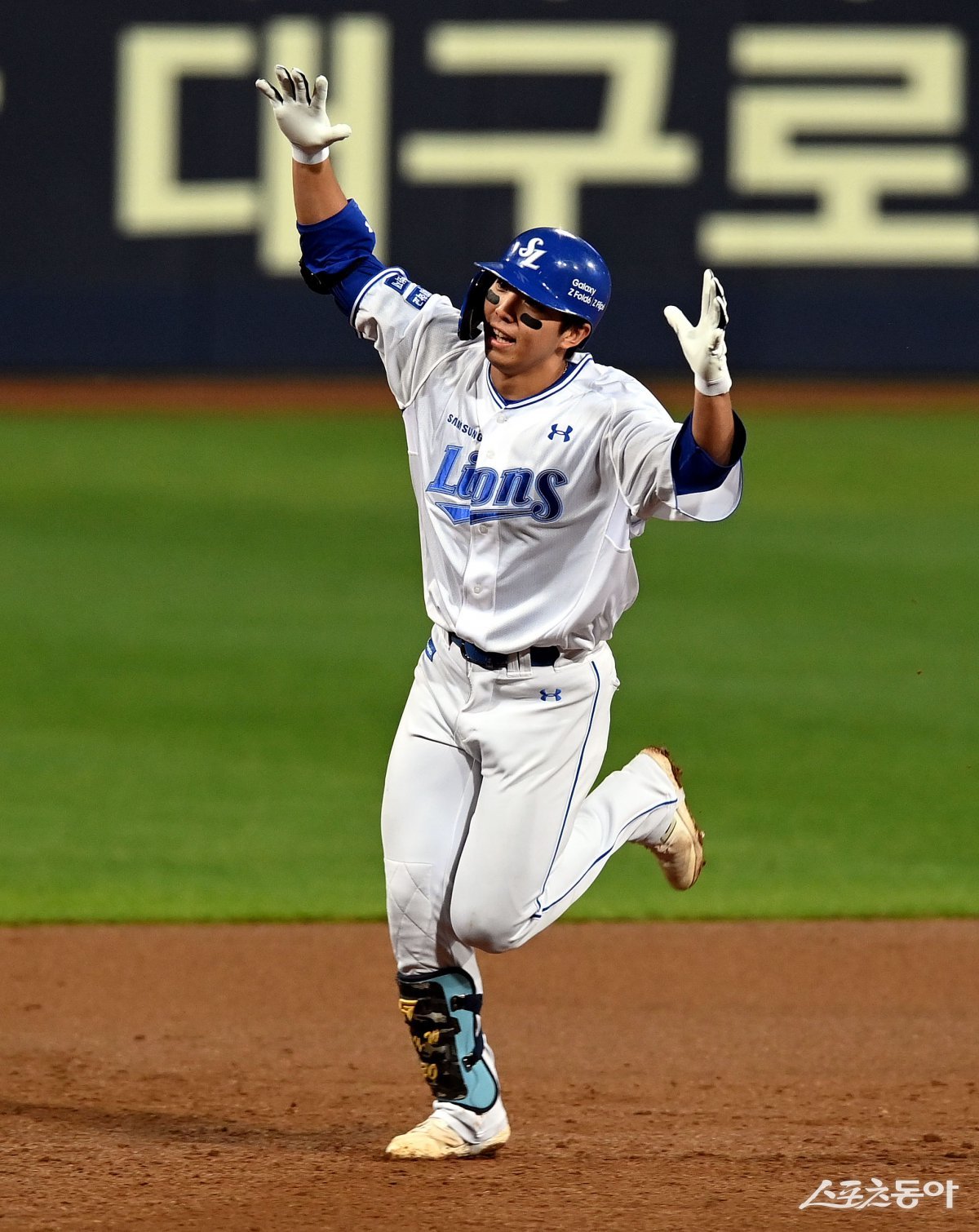 15일 대구 삼성라이온즈파크에서 ‘2024 신한 SOL 뱅크 KBO리그’ PO 2차전 경기가 열렸다. 2회말 2사에서 삼성 김영웅이 솔로 홈런을 쏘아 올린 후 그라운드를 돌며 환호하고 있다. 대구 | 김민성 기자 marineboy@donga.com