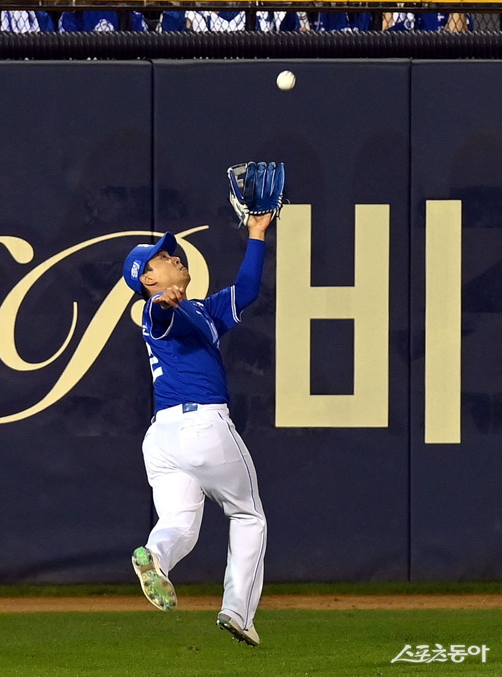 17일 서울 잠실야구장에서 ‘2024 신한 SOL 뱅크 KBO리그’ LG 트윈스와 삼성 라이온즈의 PO 3차전 경기가 열렸다. 2회말 무사 2루에서 삼성 김헌곤이 타구를 잡아내고 있다. 잠실 | 김민성 기자 marineboy@donga.com