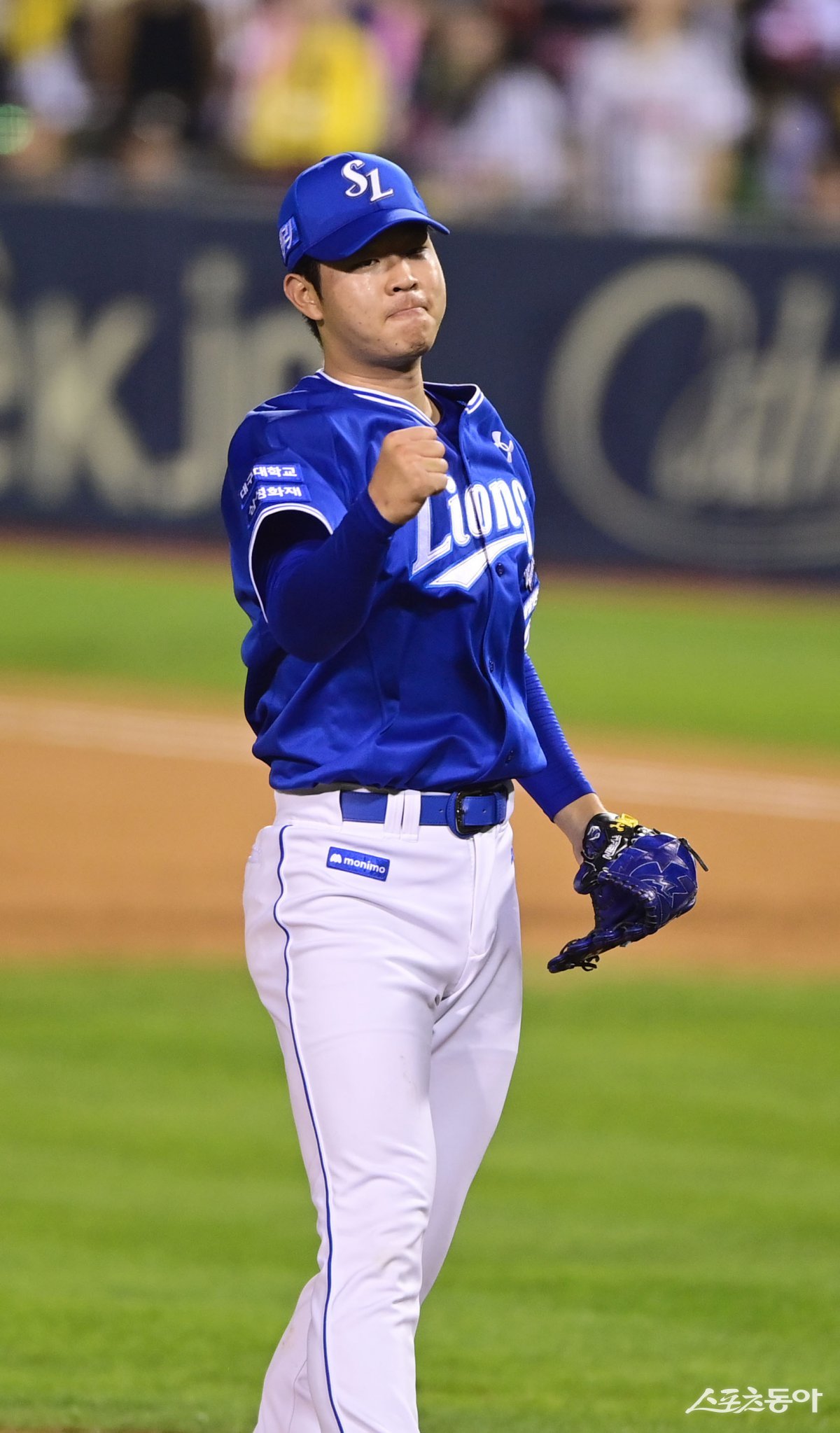 17일 서울 잠실야구장에서 열린 ‘2024 신한 SOL 뱅크 KBO리그’ 삼성 라이온즈와 LG 트윈스의 플레이오프 3차전 경기에서 2회말 무실점으로 수비를 마친 삼성 선발 투수 황동재가 주먹을 쥐며 기뻐하고 있다. 잠실 | 주현희 기자 teth1147@donga.com